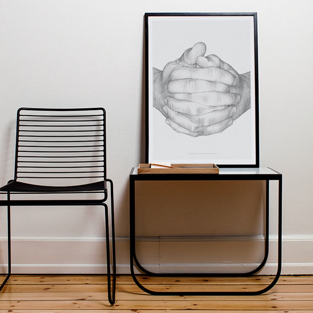 Folded Hands is a limited edition by Paper Collective. The drawings originate from the pen of the Norwegian illustrator Börge Bredenbekk. The black-white print is based on a pencil sketch and displays two interlaced hands. An expressive motive with meditative effect.