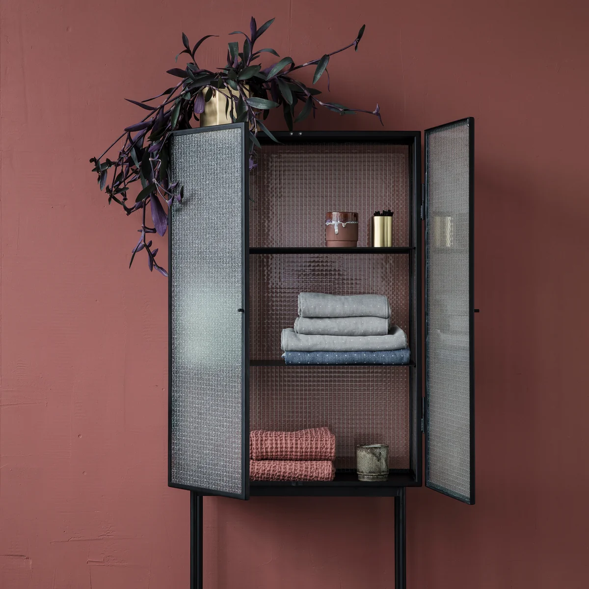 Inside the cabinet, there are two shelves which provide enough space for towels, vases, glasses, or books, depending on where Vitrine is placed. In the bathroom, it is ideal for towels, toothbrushes, makeup, whilst in the kitchen, it can serve as a cupboard for exotic spices. Haze can also be the perfect cabinet for glasses and crockery in the dining room.