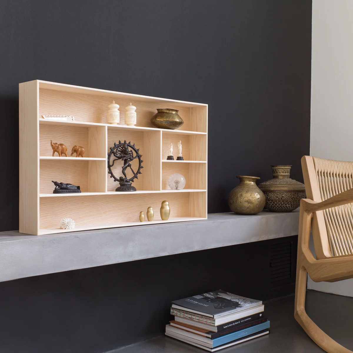 The box can be placed freely or mounted on a wall, giving the impression that it is floating with the slight gap between the back of the shelf and the wall. Anything can be put in the treasure box: Grandpa's valuable collection of miniature cars, beautiful relics from your holidays, fine porcelain vases and bowls, but also everyday items like pencils, rulers, or scissors.