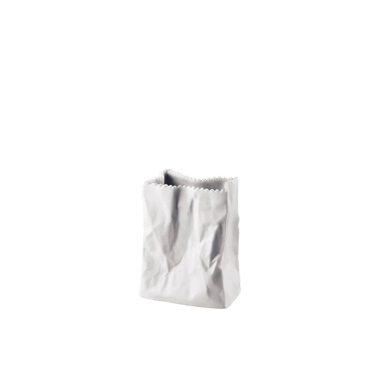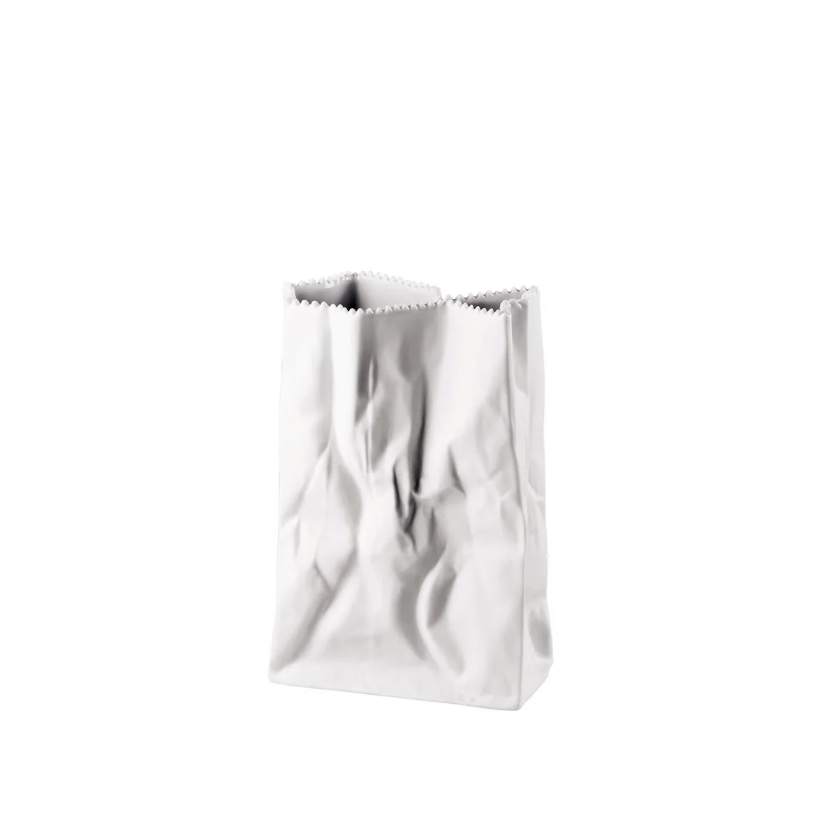The vase was already designed in 1977 and was inspired by the simple form of a paper bag. The characteristic creases, wrinkles and the zigzag edge of such a bag are perfectly imitated in the Rosenthal paper bag vase. The paper bag was immortalized in the shape of a vase of porcelain becoming a classic design object. The attractiveness is the contrast between an allegedly simple bag shape and the high-quality material processing from porcelain.
