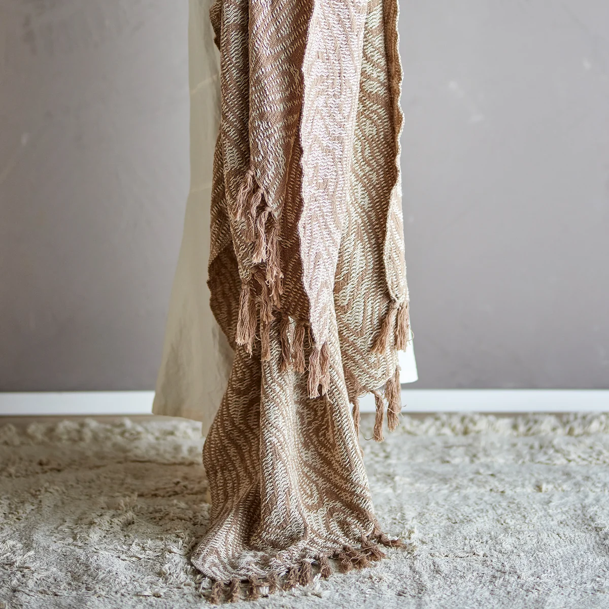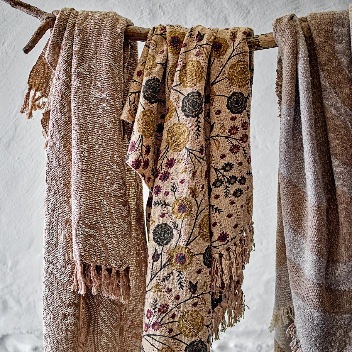 The Okapi blanket from Bloomingville combines natural charm with sustainable design. Made from recycled cotton and woven in earth tones, it brings a relaxed, organic atmosphere into your home. The decorative fringes on the edges emphasize the casual look, while the soft quality is ideal for cosy hours on the sofa or as a light throw.