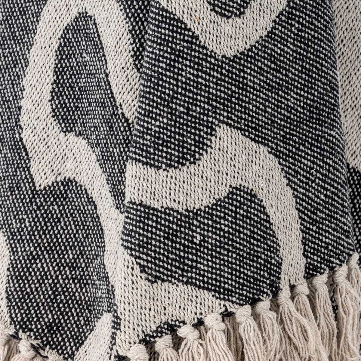 The Salobre blanket from Bloomingville combines sustainable materials with modern design. It is made from recycled cotton and features an organic-looking pattern in a timeless design. The woven structure and decorative fringes at the ends give the blanket a casual look with natural charm.