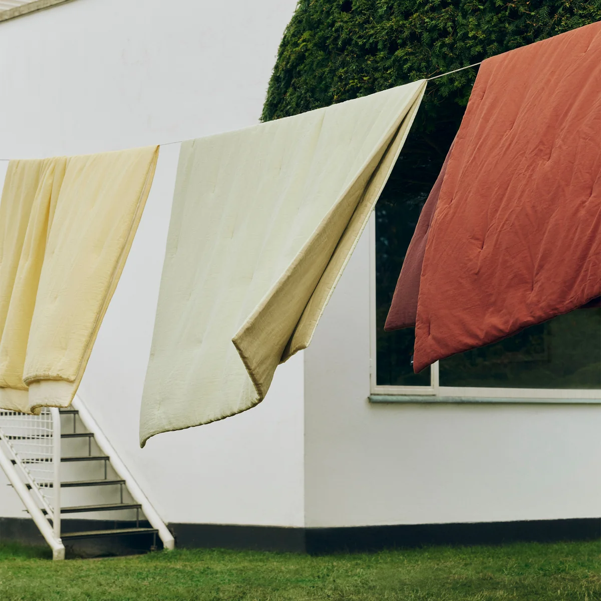 The Air Quilt from HAY impresses with its airy lightness and versatile, functional design. With its subtle, tonal colors on both sides, it can be used flexibly and adapts effortlessly to different moods and environments. Made from soft organic cotton and padded with recycled polyester, the blanket offers a pleasantly light, breathable feel.