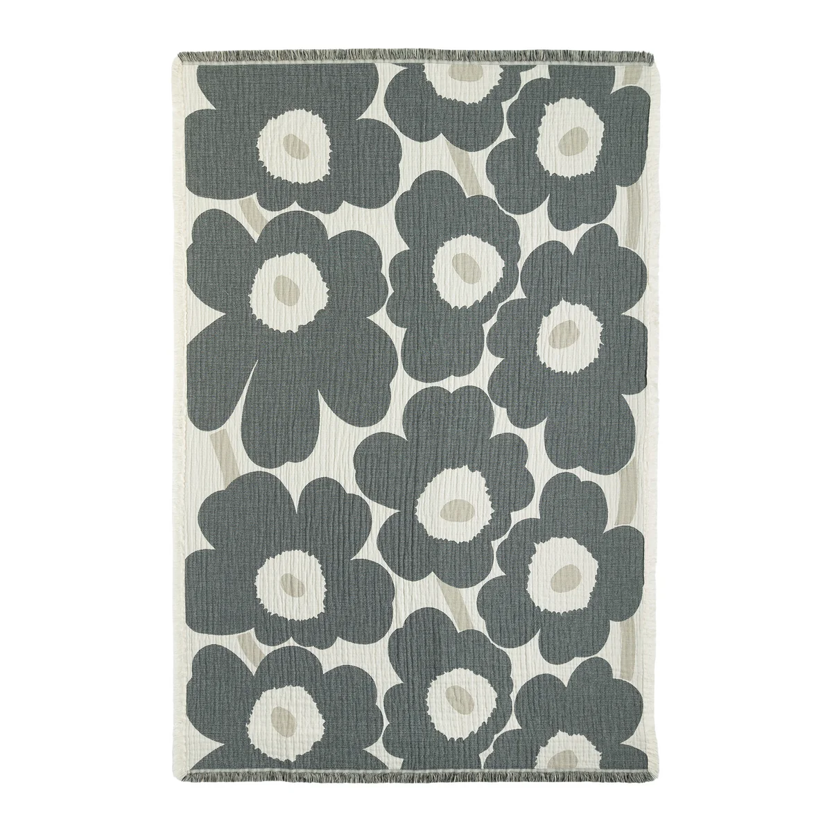 The Unikko blanket from Marimekko is made from organic cotton in a jacquard knit and exudes both style and comfort. The short fringes on all sides give this blanket a touch of elegance. In addition, the colors of the pattern are reversed on the other side, so it can be styled in a variety of ways.