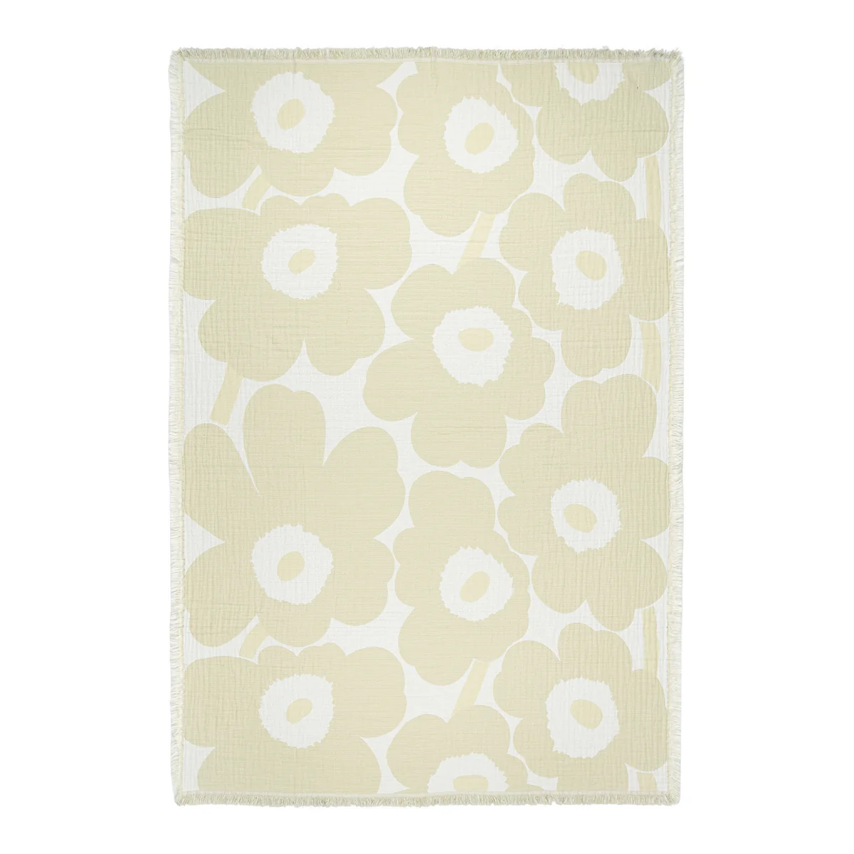 The Unikko blanket from Marimekko is made from organic cotton in a jacquard knit and exudes both style and comfort. The short fringes on all sides give this blanket a touch of elegance. In addition, the colors of the pattern are reversed on the other side, so it can be styled in a variety of ways.