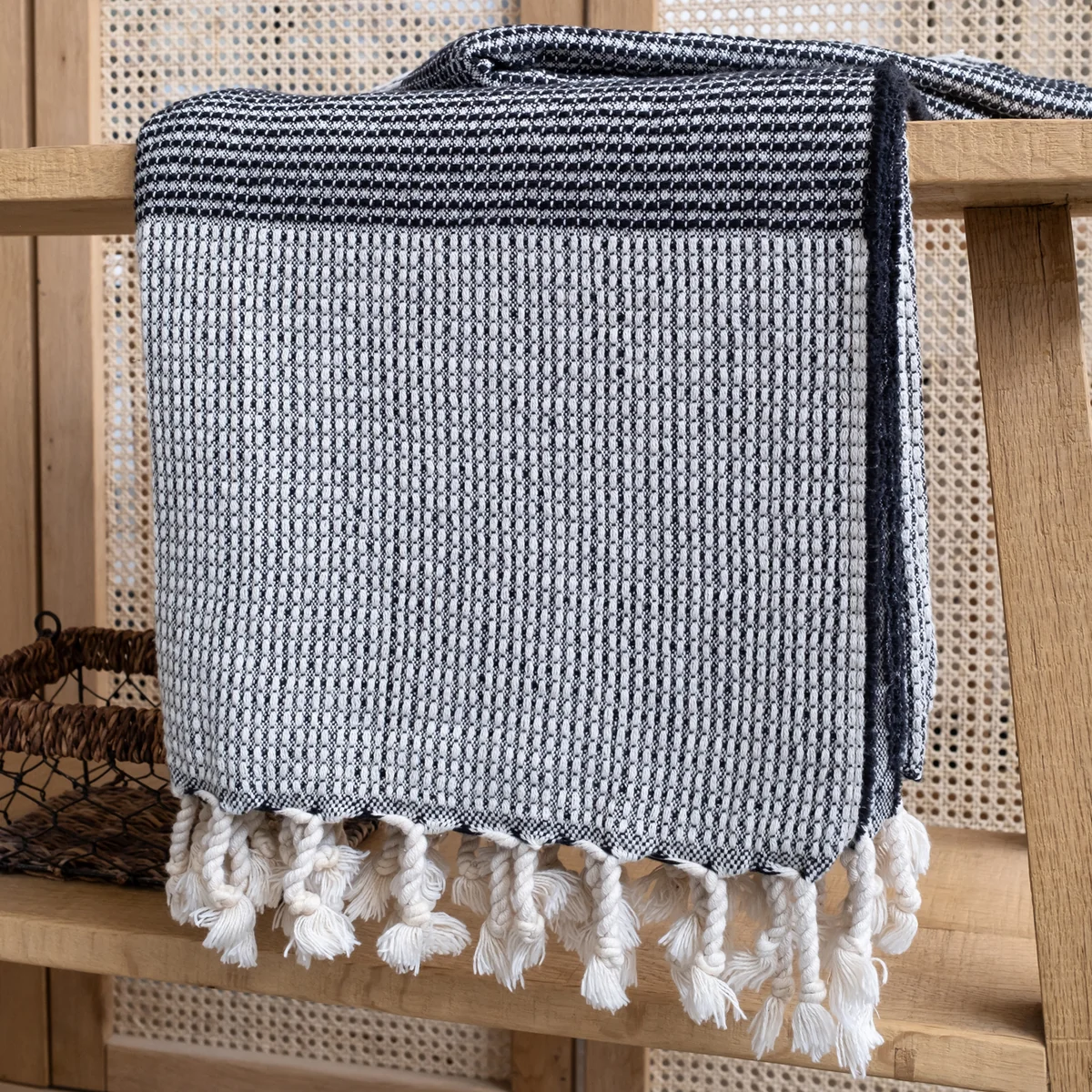 The striped Carbon blanket from Nuuck combines modern design with high-quality cotton to create a luxurious home accessory. The subtle striped patterns that run across the entire blanket add a subtle elegance and timeless sophistication to any room. Made from premium cotton, the blanket offers a pleasant feeling of softness and comfort, perfect for snuggling up to on chilly evenings. Whether as a stylish accent on the sofa or as an extra source of warmth in the bedroom, the striped Carbon blanket from Nuuck is not only a practical accessory, but also a statement of sophisticated taste and style.