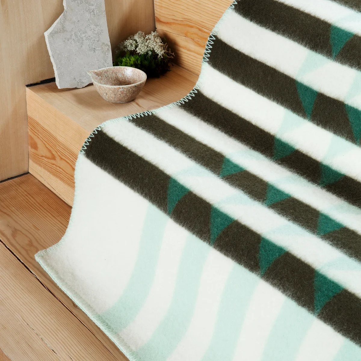 The Kvam Røros Tweed blanket is unique with its play of geometry, guided by the possibilities and limitations of the jacquard weave. The motif here refers to the horizontal and vertical directions of the fabric, while the diagonal lines create rhythm and dynamics. The Kvam blanket in lambswool was created by designer Kristine Five Melvær. It is available in various colour finishes.
