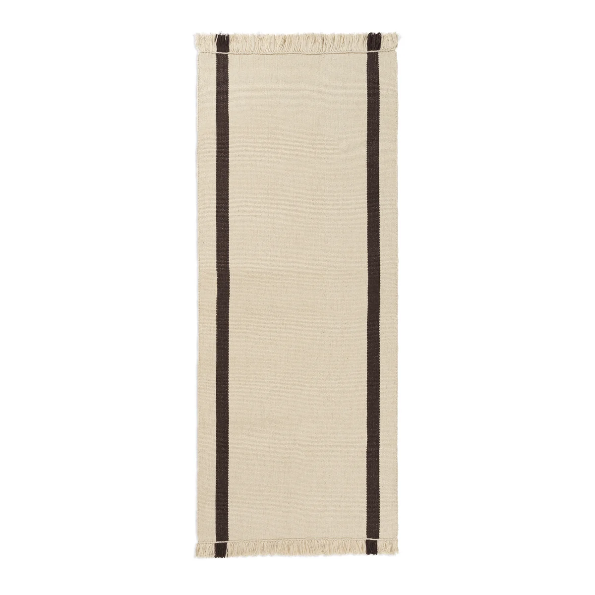 The Calm Kelim rug runner from Ferm Living is artistic and blends seamlessly into any home. It creates a harmonious link between tradition and contemporary style. The Calm Kelim rug runner impresses with an artful kilim design inspired by the brand's Scandinavian roots. The clean lines, geometric patterns and soft color nuances give the room a modern yet calming aesthetic.