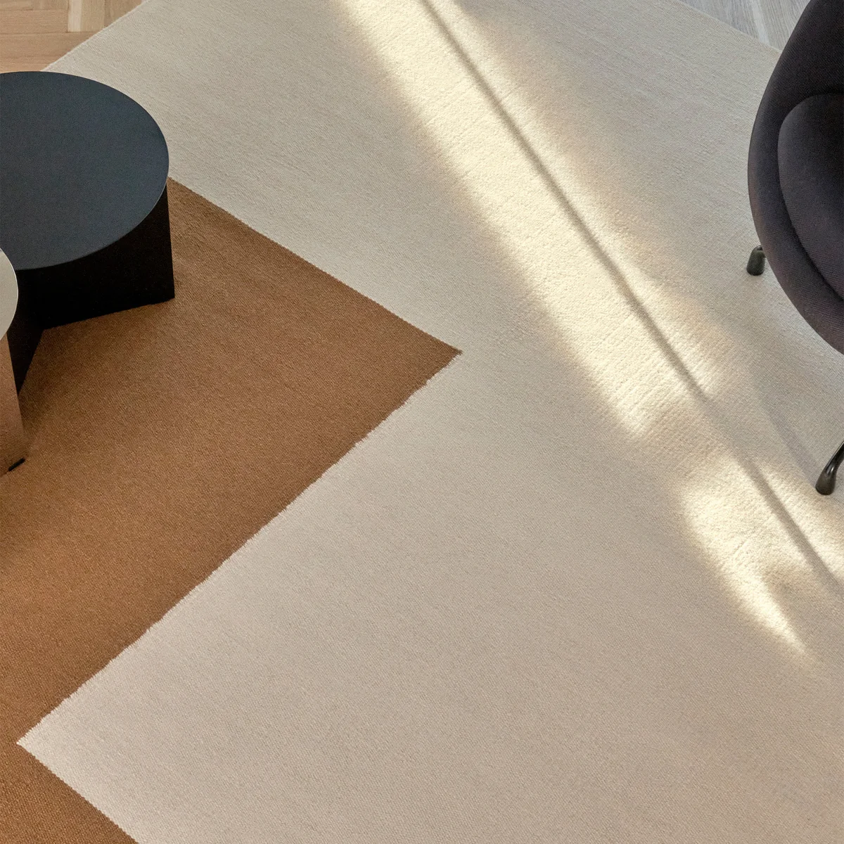 Inspired by decoratively woven wall art, Ethan Cook's Flat Works is a series of handwoven kilim rugs designed specifically for HAY designed. With a geometric abstract design, the rugs translate the designer's bold color-blocked artwork into practical and decorative items.