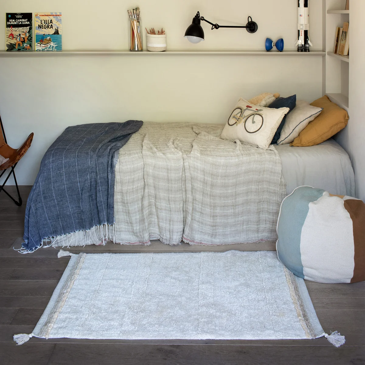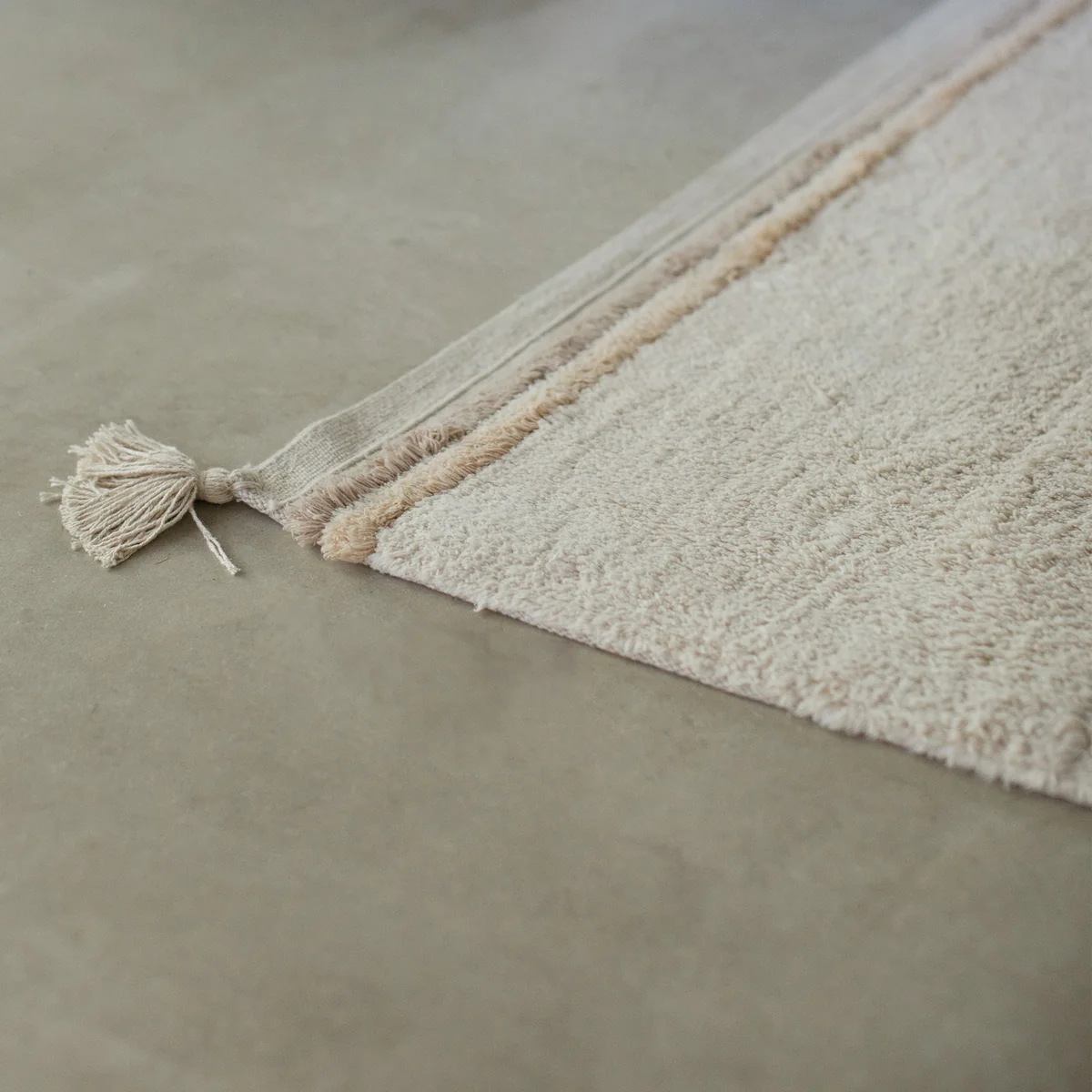 Washable rug made of cotton yarn and recycled fibers in a simple design