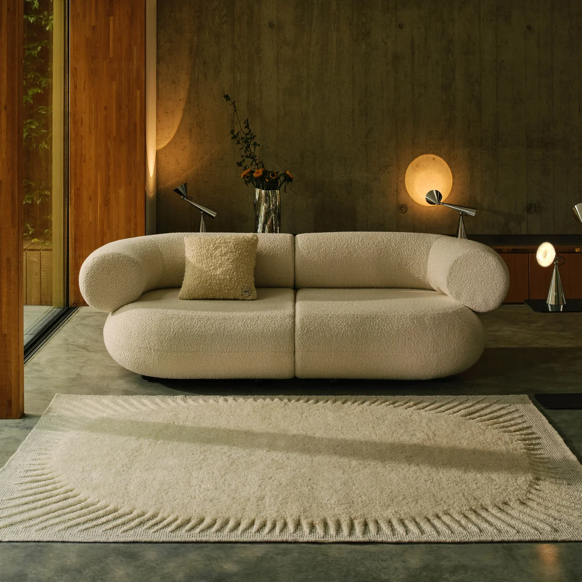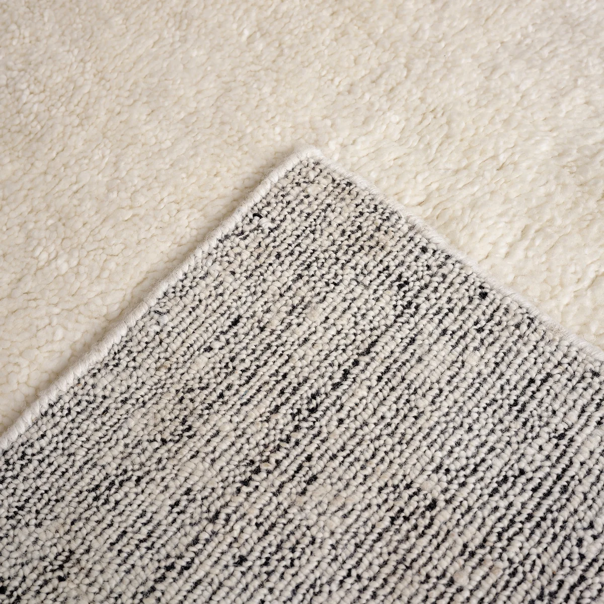 The Edgy rug combines clear contours with precision craftsmanship. The design emphasizes the border as a design element, while the high pile creates a soft, tactile contrast. The combination of a hand-woven base fabric with a hand-tufted, cut-back pile creates a surface with depth and texture. The rug made from New Zealand wool blends harmoniously into both modern and classic interiors.