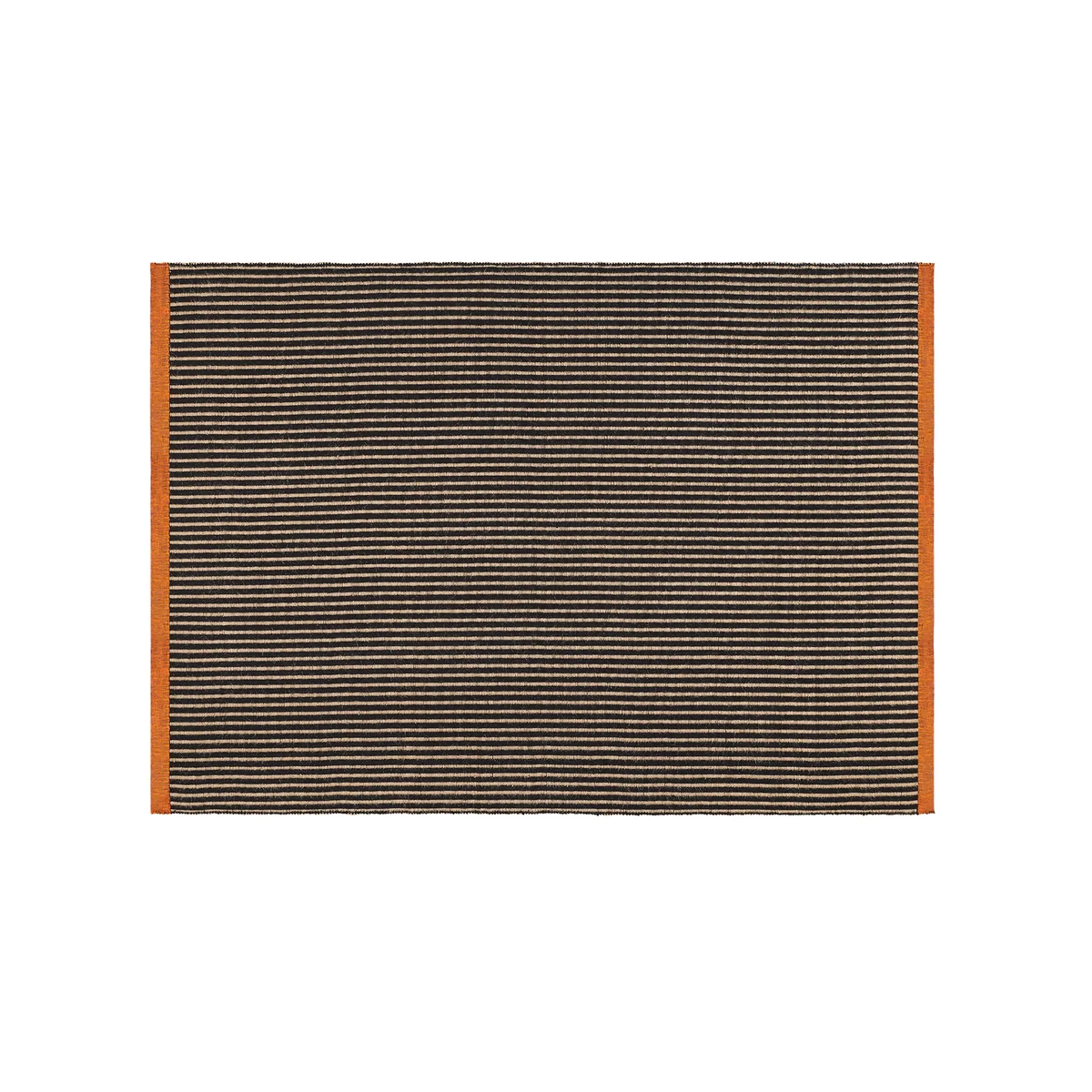 The Line rug from Tom Dixon impresses with its striking, reversible flat weave made from mixed jute yarn. The design combines black stripes with a contrasting orange band, which gives the rug a modern, graphic character. Thanks to its hard-wearing structure and different sizes, the Line rug is equally suitable for small and large rooms and makes a clear, design statement wherever it is used.