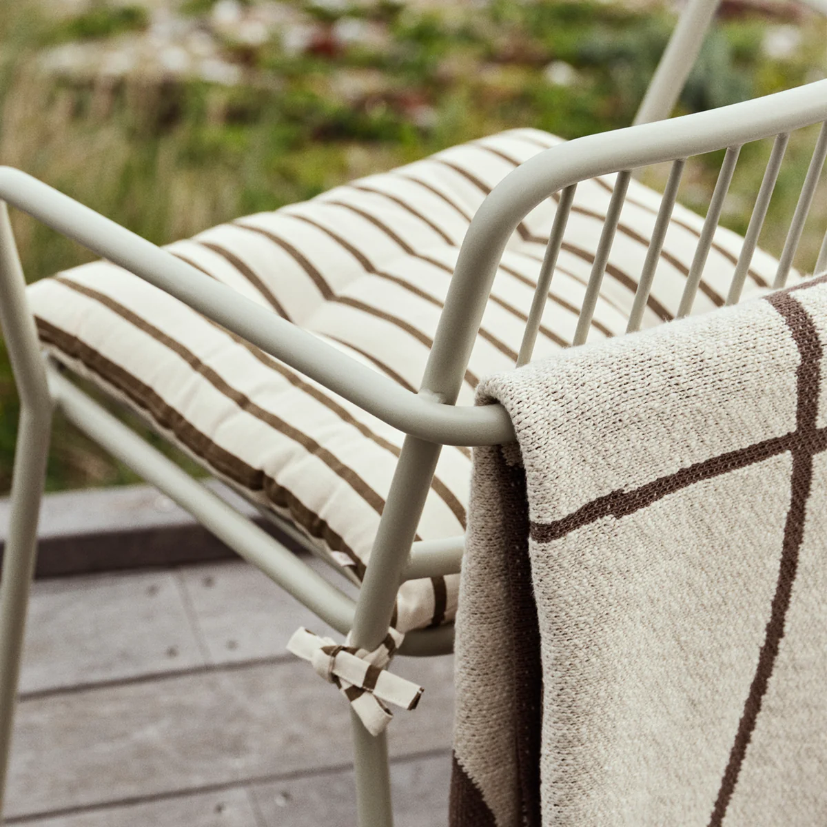 Specially developed for the Eden outdoor furniture series, the seat cushions combine comfort and style. The beige cotton fabric with kangaroo brown stripes reflects the Nordic roots and creates a seamless connection between indoor and outdoor aesthetics. Franca offers a harmonious synergy of nature and design that invites you to relax and socialize.