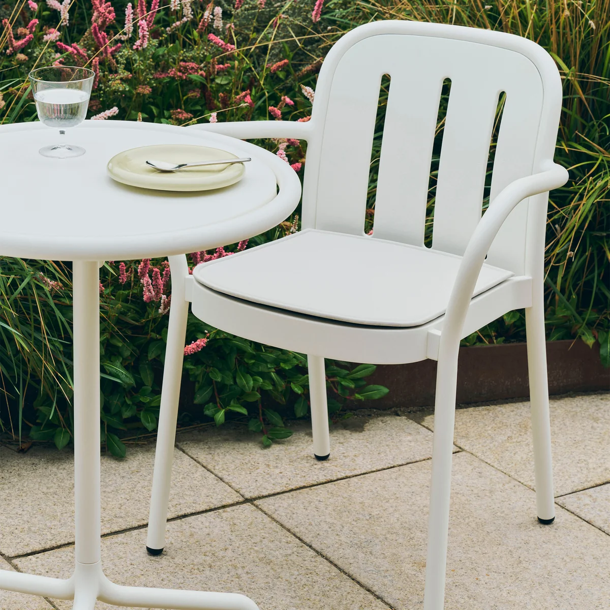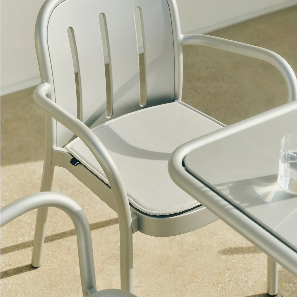 Thanks to high-quality, weather-resistant materials, the seat cushion is designed for outdoor use - it defies the sun, moisture and changing weather conditions. The upholstery provides a pleasantly soft seat and makes long meals, conversations or relaxed outdoor moments even more comfortable. The neutral colors and clear design complement the minimalist character of the furniture perfectly Deville furniture perfectly and can be harmoniously integrated into various patio, garden or restaurant settings.