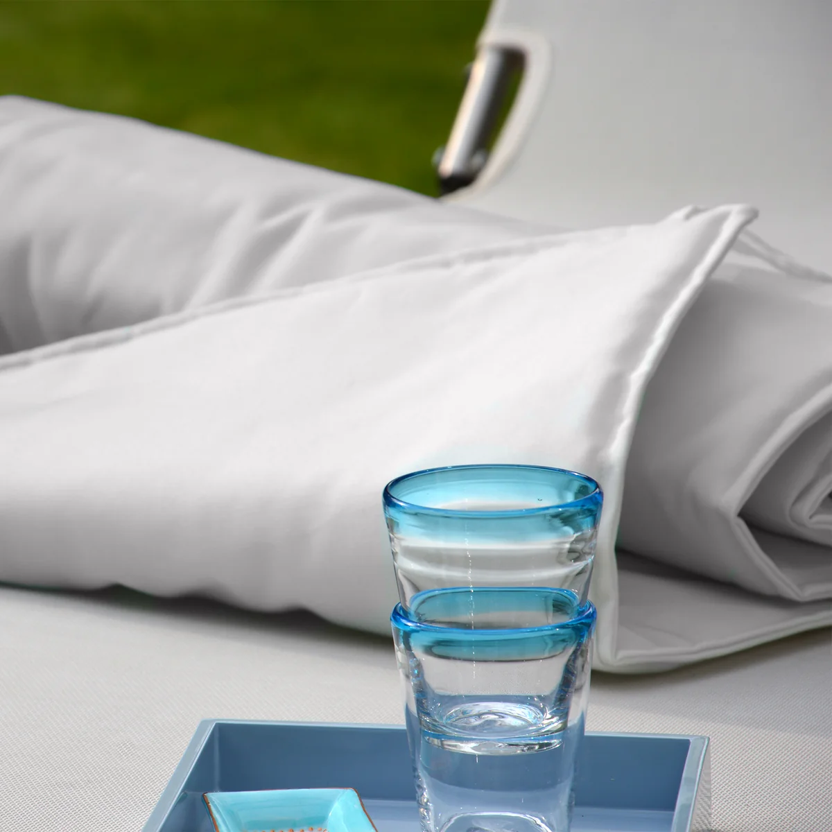 The Rimini padding by Jan Kurtz makes the sunbed from the same name collection even more comfortable. It is equipped with a non-woven filling and the cover fabric is made up of 100% poly-acrylic. This makes the Edition weather resistant and protects it from UV rays. In heavy rain, however, the padding should be taken inside the house.