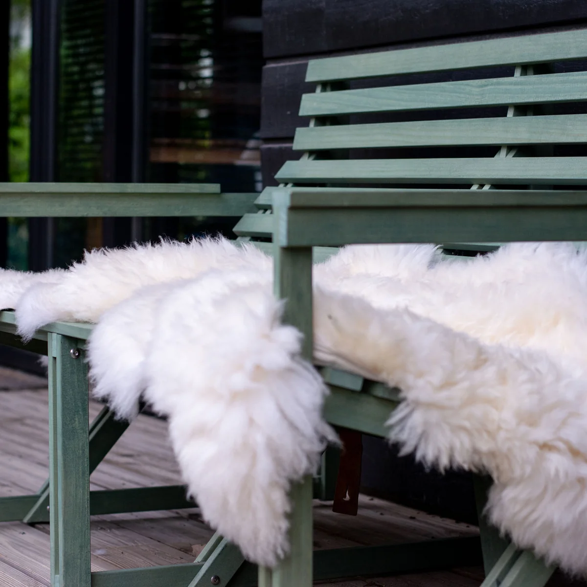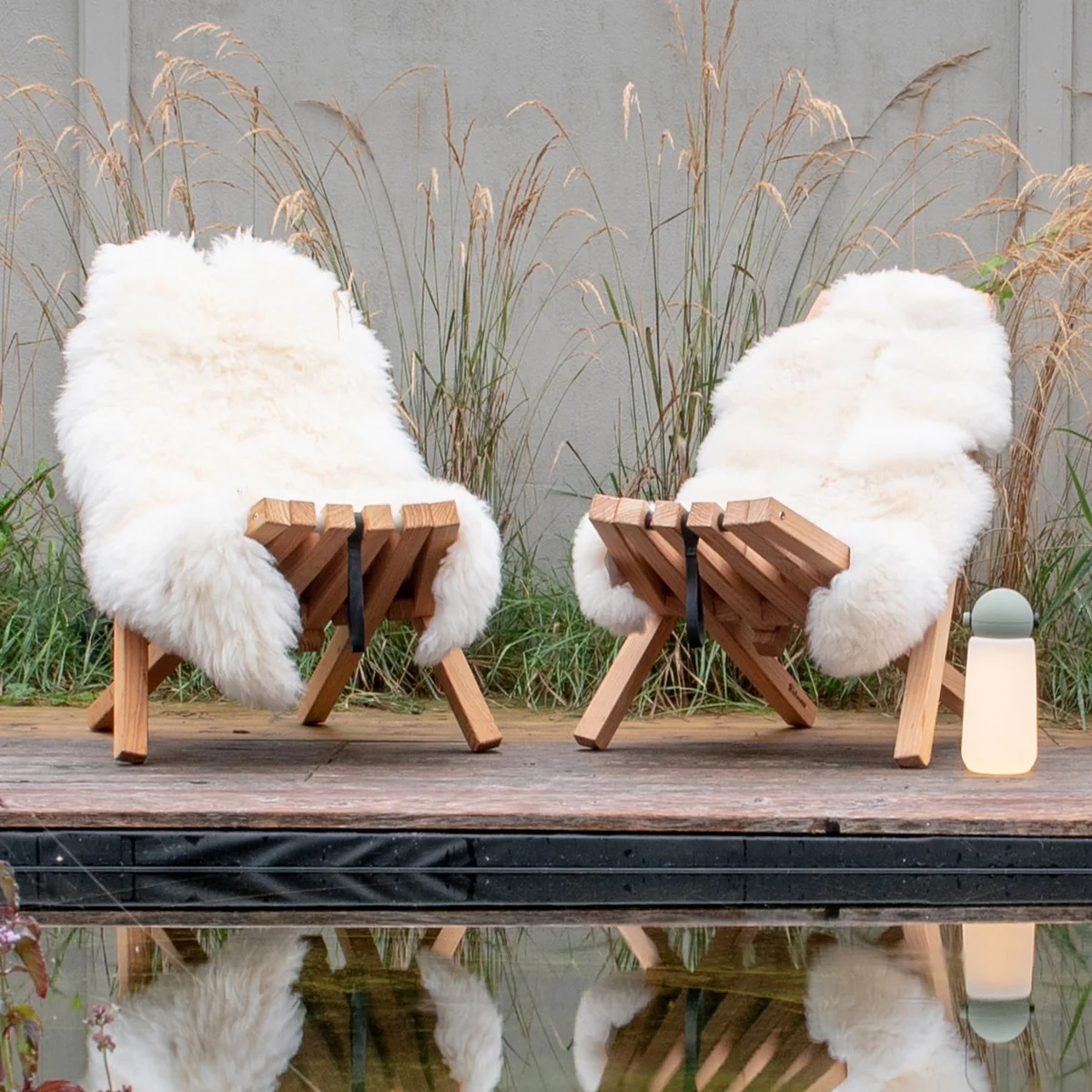 Weltevree's sheepskin creates cosiness in the interior and exterior ambience. Arranged as a carpet on the floor or as a throw-over placed on the fieldchair and a bench, the fur provides warmth, well-being and a cozy atmosphere.