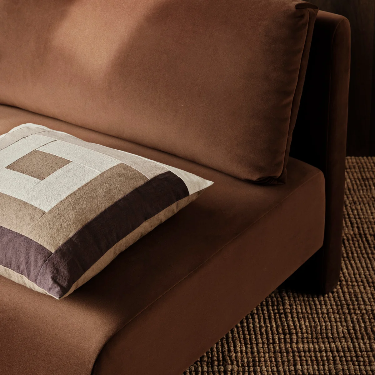 The Border Patchwork cushion from Ferm Living shows the masterful combination of different fabric patterns to create a harmonious whole. Each cushion is unique and the careful arrangement of fabrics gives it a lively and artistic look. Only high-quality materials are used for the Border Patchwork cushion, which are known not only for their softness but also for their durability. The careful selection of fabrics ensures a pleasant feel against the skin.