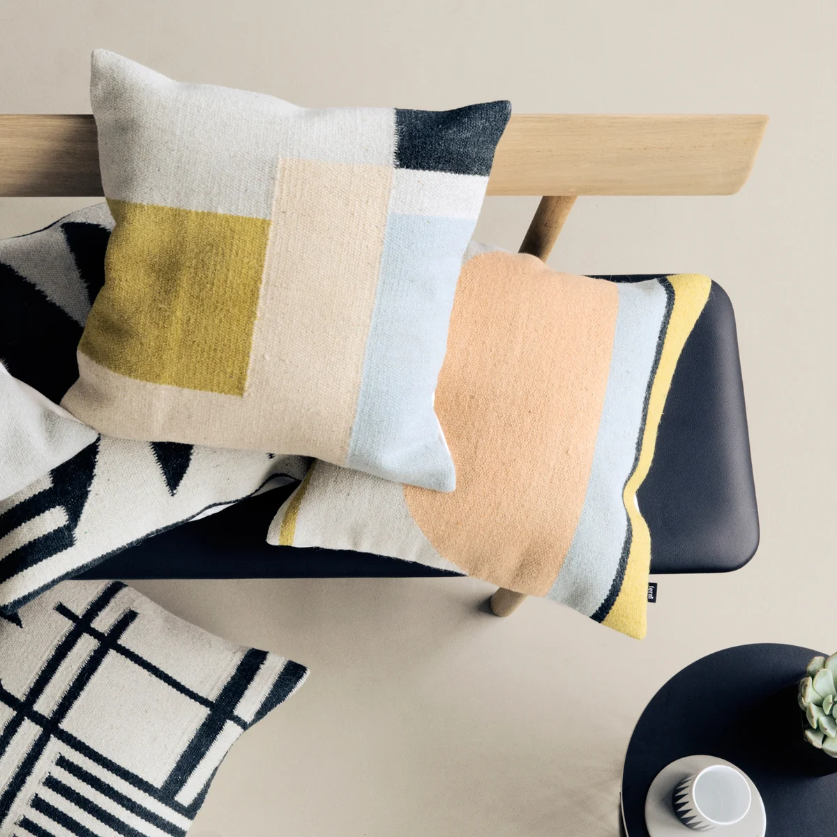 A Kelim is a woven rug that has been embellishing walls and floors of Middle Eastern homes for thousands of years. Ferm Living was inspired by these textiles for the design of their Kelim Cushions, for two reasons: Like their role models, the Ferm Living cushions are woven. Furthermore, typical of both a Kelim and of Ferm Living: the inspiring geometrical patterns.