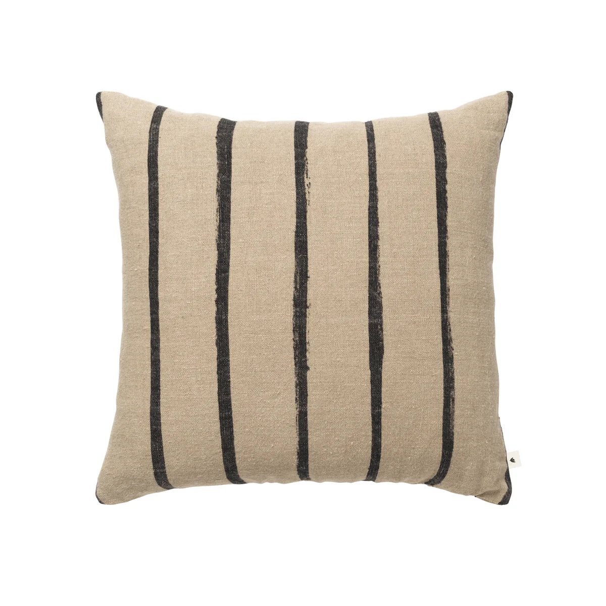 The Oleo cushion is made from 100% washed linen and features hand-drawn patterns that are brought to life using an intricate hand screen printing process. The ink is pressed through a fine screen to transfer the artistic lines onto the fabric with exceptional clarity. This delicate technique gives the cushion a subtle, handcrafted touch and combines artistry with expressive design.