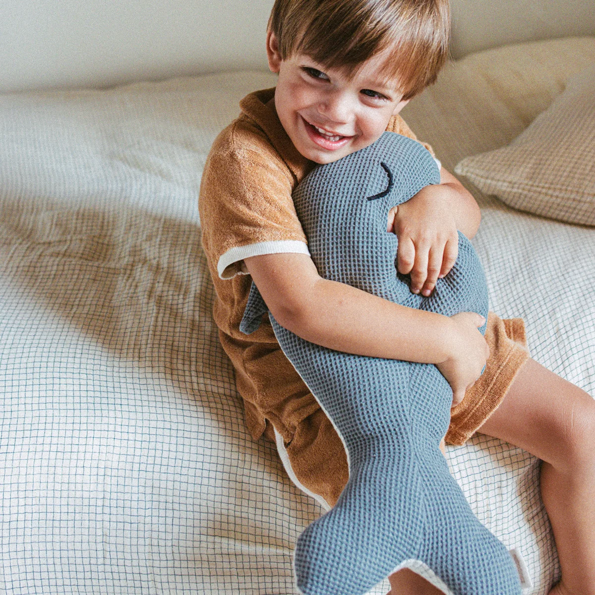 The Wabi Sabi Whale pillow by Nobodinoz is an enchanting accessory for the children's room that celebrates the beauty in simplicity and transience. Inspired by the Japanese Wabi Sabi -Philosophy, this pillow captivates with its natural hues and high-quality textiles that create a soothing and relaxing atmosphere. The cute whale shape invites to play and cuddle and stimulates the child's imagination. It is not only a stylish decorative element, but also a faithful companion for cozy hours. The Wabi Sabi Cushion Whale by Nobodinoz combines aesthetics, comfort and timeless elegance and will delight children and parents alike.