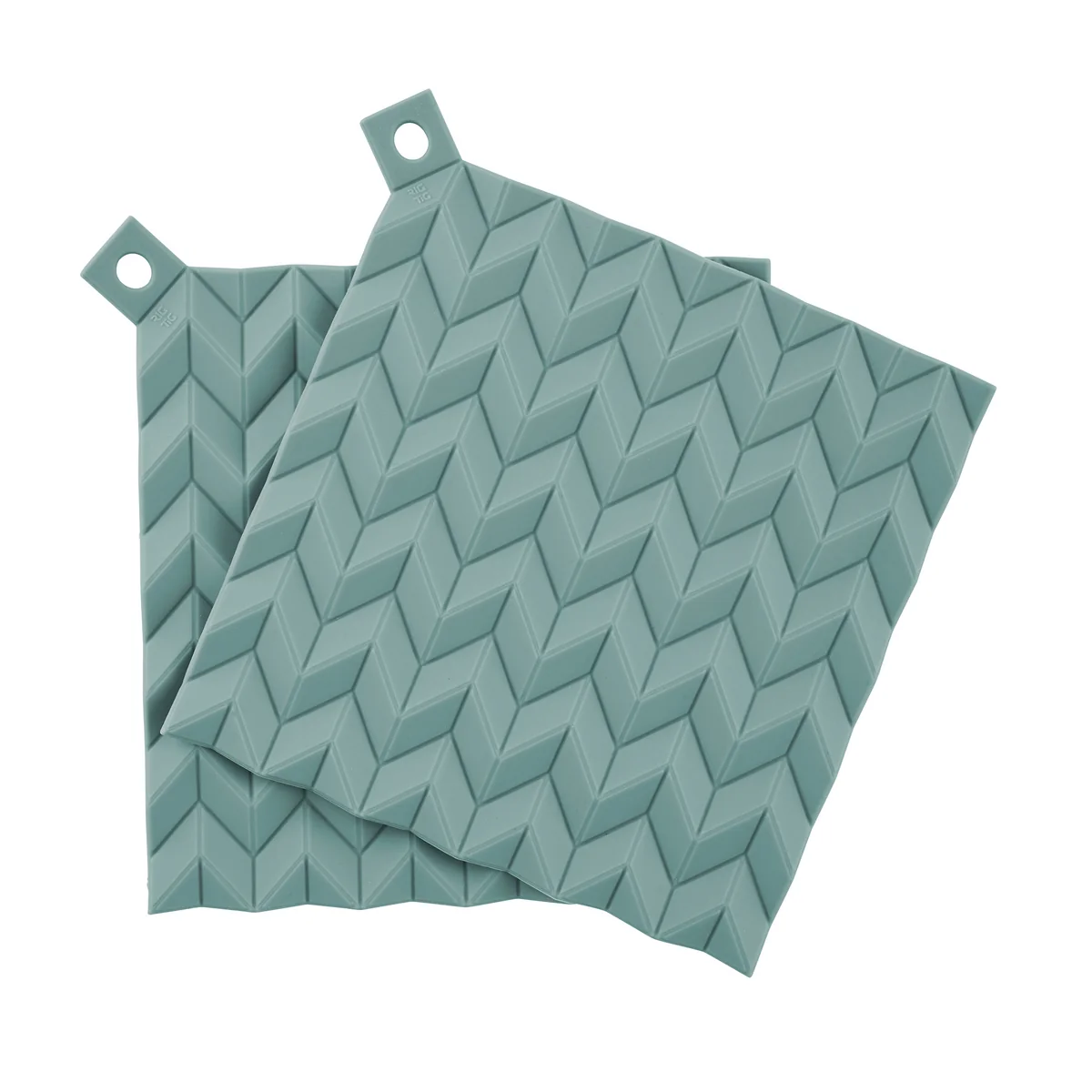 Designer Søren Refsgaard was particularly disturbed by the insecure grip of the conventional potholders , which is why he was inspired by origami shapes while folding paper models. The pattern of the pot holders therefore not only looks appealing, but also contributes significantly to the grip of hot pots and pans.