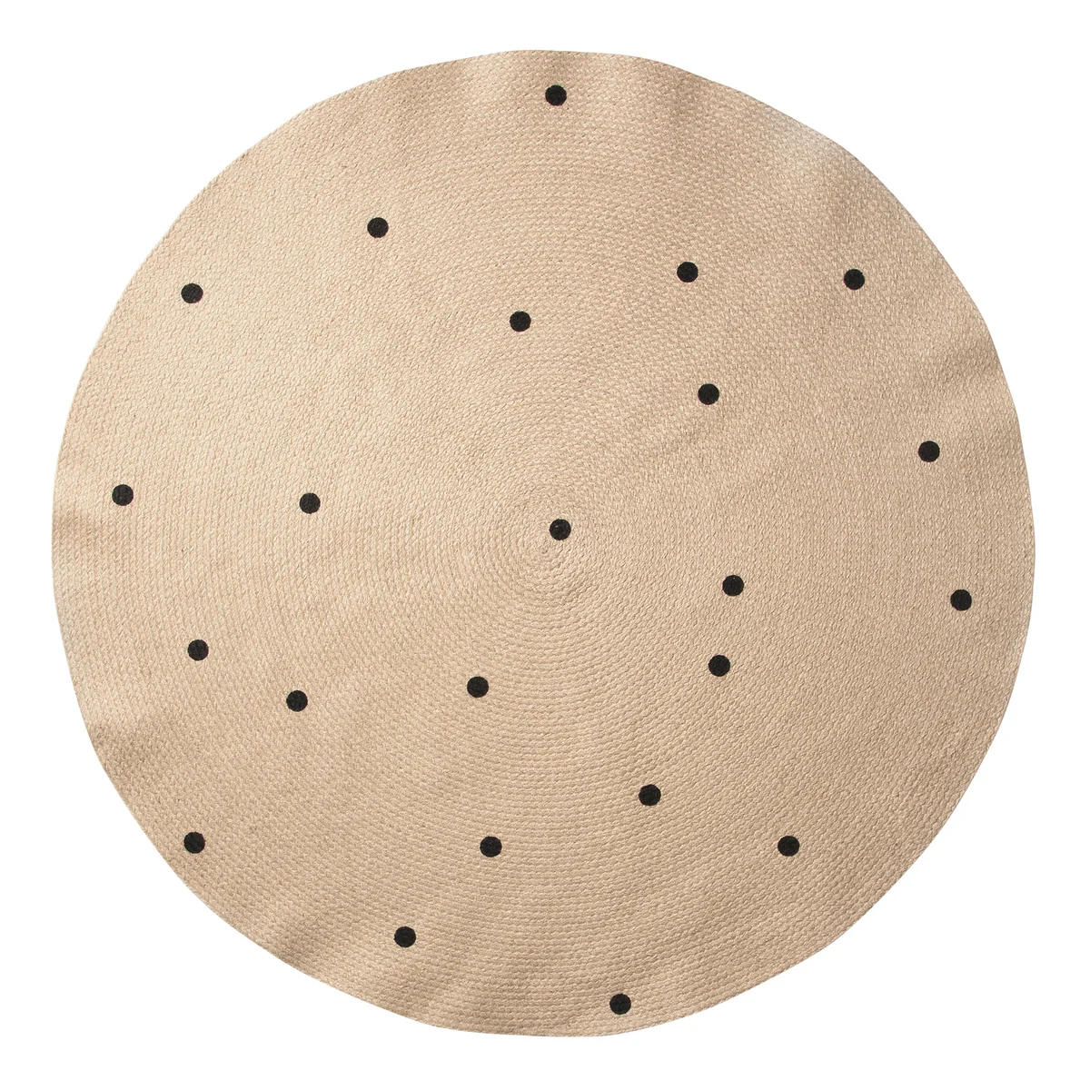 The Black Dots jute rug by Ferm Living is a simple and timeless rug with small black dots on the round surface. The rug can be used as a play mat in the middle of the nursery or as eye-catcher under an armchair.