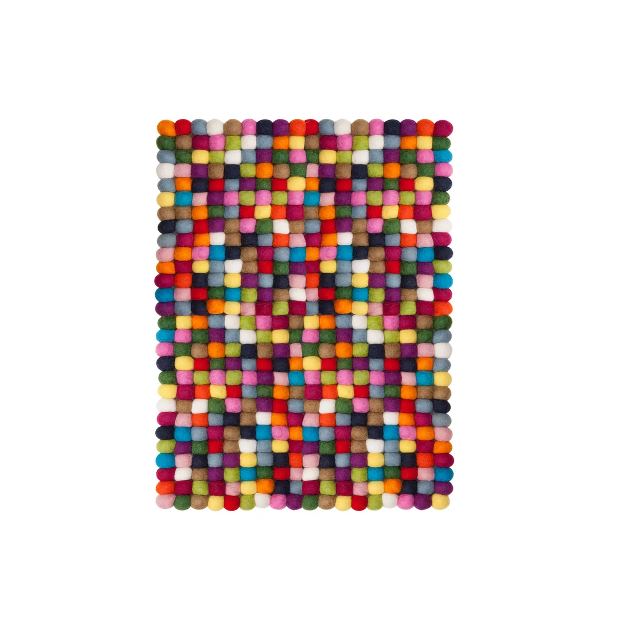 The rectangular felt ball rug from myfelt is colorful and immediately catches the eye. Its brightly colored felt balls attract everyone's attention and bring joy to any room. Whether in the living room or children's room.