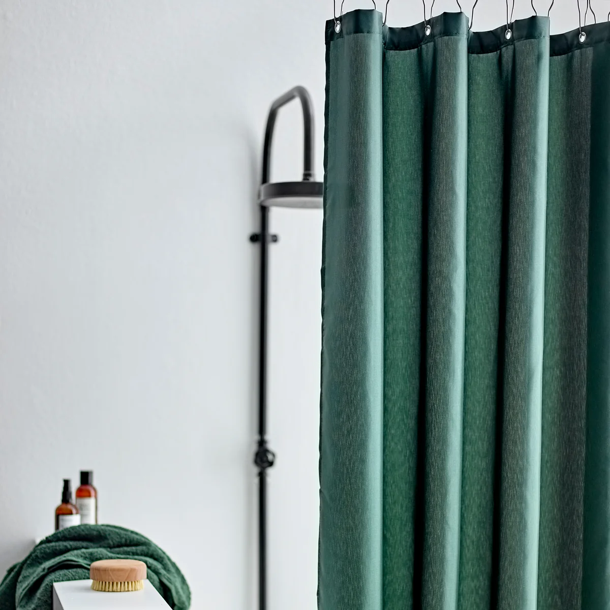 Made from 100% water-repellent polyester, the shower curtain is both water-repellent and particularly easy to care for. The curtain can be washed at 40 degrees if necessary.