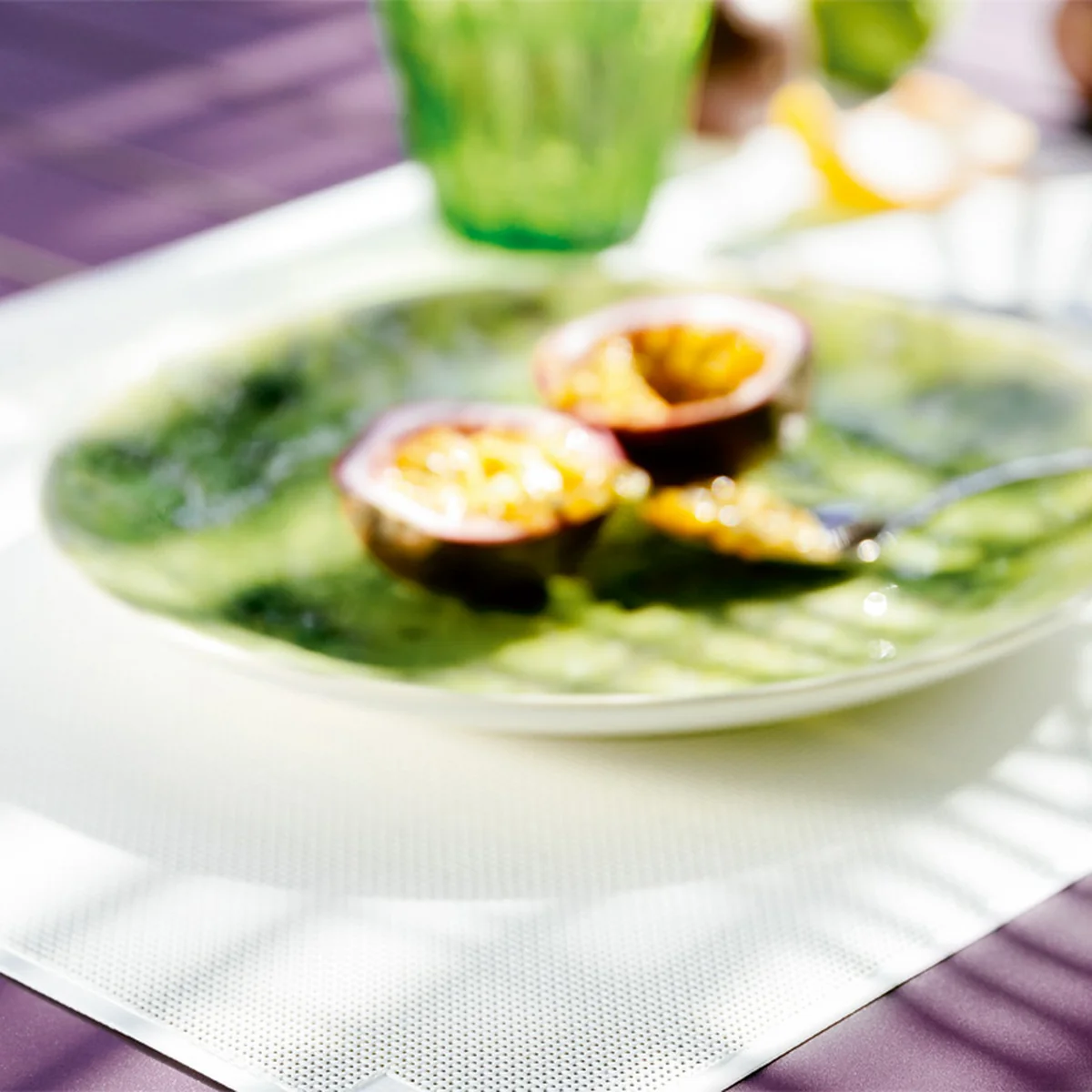 The outdoor placemat sets are the perfect addition to any dining table, bistro table and side table of the collections by Fermob. The placemats match the furniture by Fermob not only in its design and colour but also in a similar manufacture: both, placemats and furniture are suitable for outdoor use. Therefore, the placemat sets can be used without any hesitation for the next barbecue or breakfast in the garden or on the balcony.