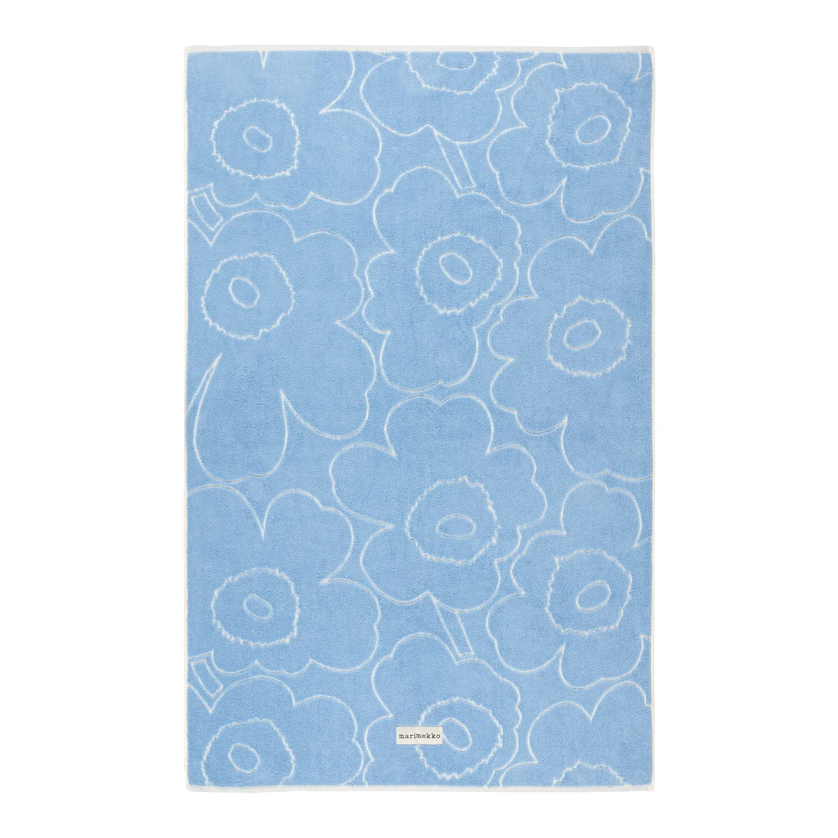 The Piirto Unikko bath towel from Marimekko is made from heavy organic cotton terry cloth and is characterized by its high quality and absorbency. One side features the embossed Piirto Unikko pattern, a stylized version of the iconic floral pattern designed by Maija Isola in 1964. The Marimekko label adorns the bottom edge and adds a touch of authenticity.