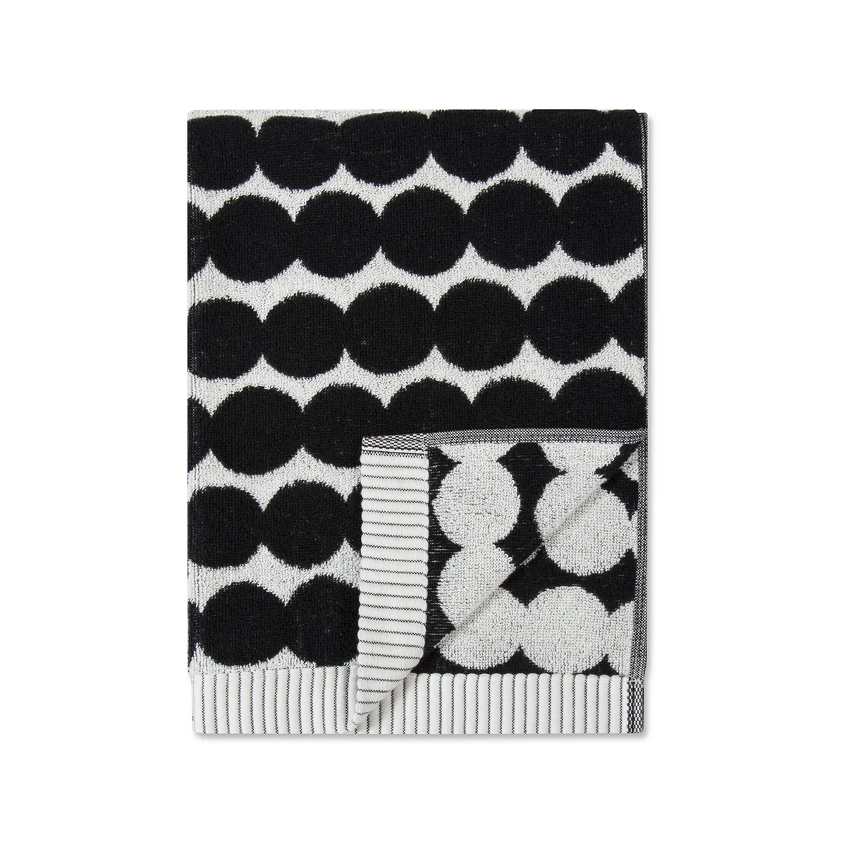 The Räsymatto towel from Marimekko is adorned with the dotted Räsymatto -pattern in various colors. The playful motif was created by designer Maija Louekari. Simple yet striking, the world-famous pattern is perfect for adding structure to the Marimekko towel without overloading the bathroom as a whole.