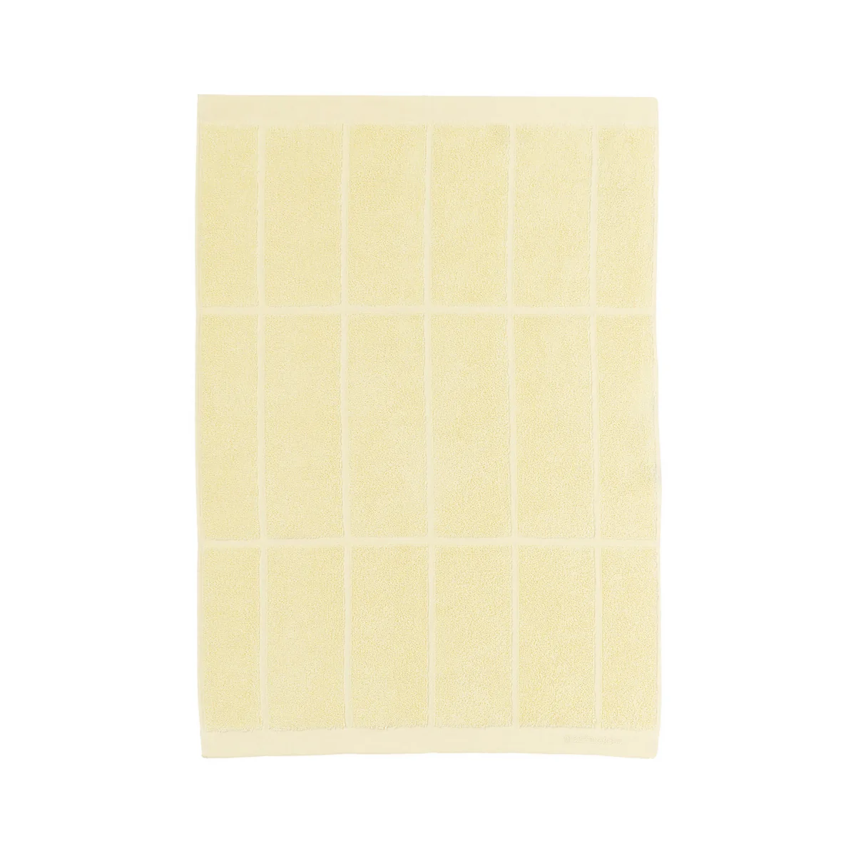 Available in various sizes, the bathroom textile with Tiiliskivi design is also available as a small guest towel or large bath towel .