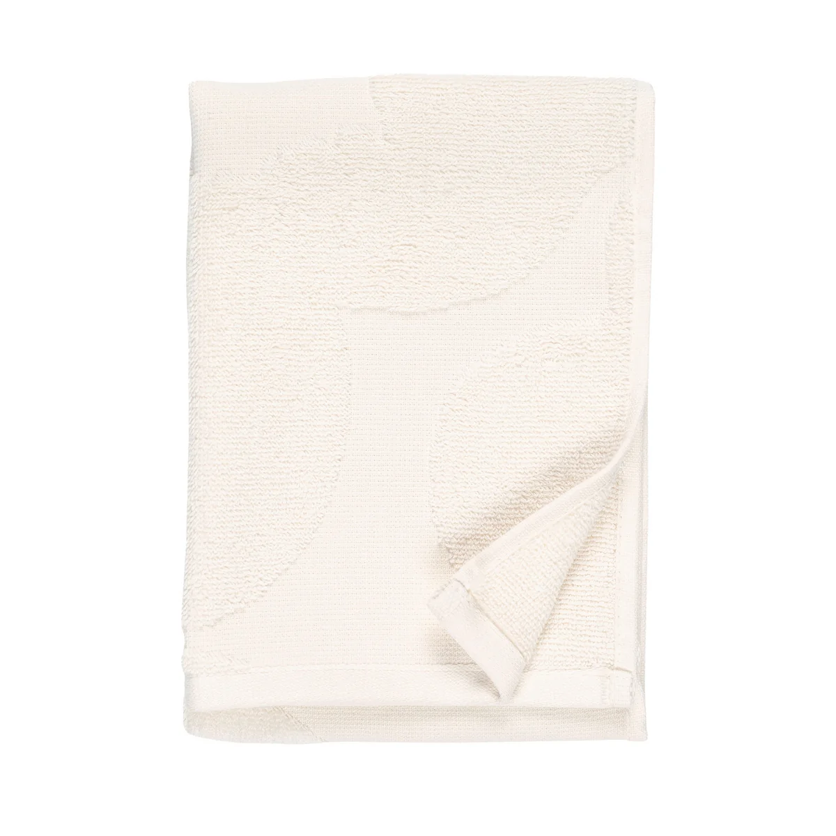 The bathroom textile with Solid Unikko pattern is available in various colors in three sizes as a hand towel, guest towel or bath towel.