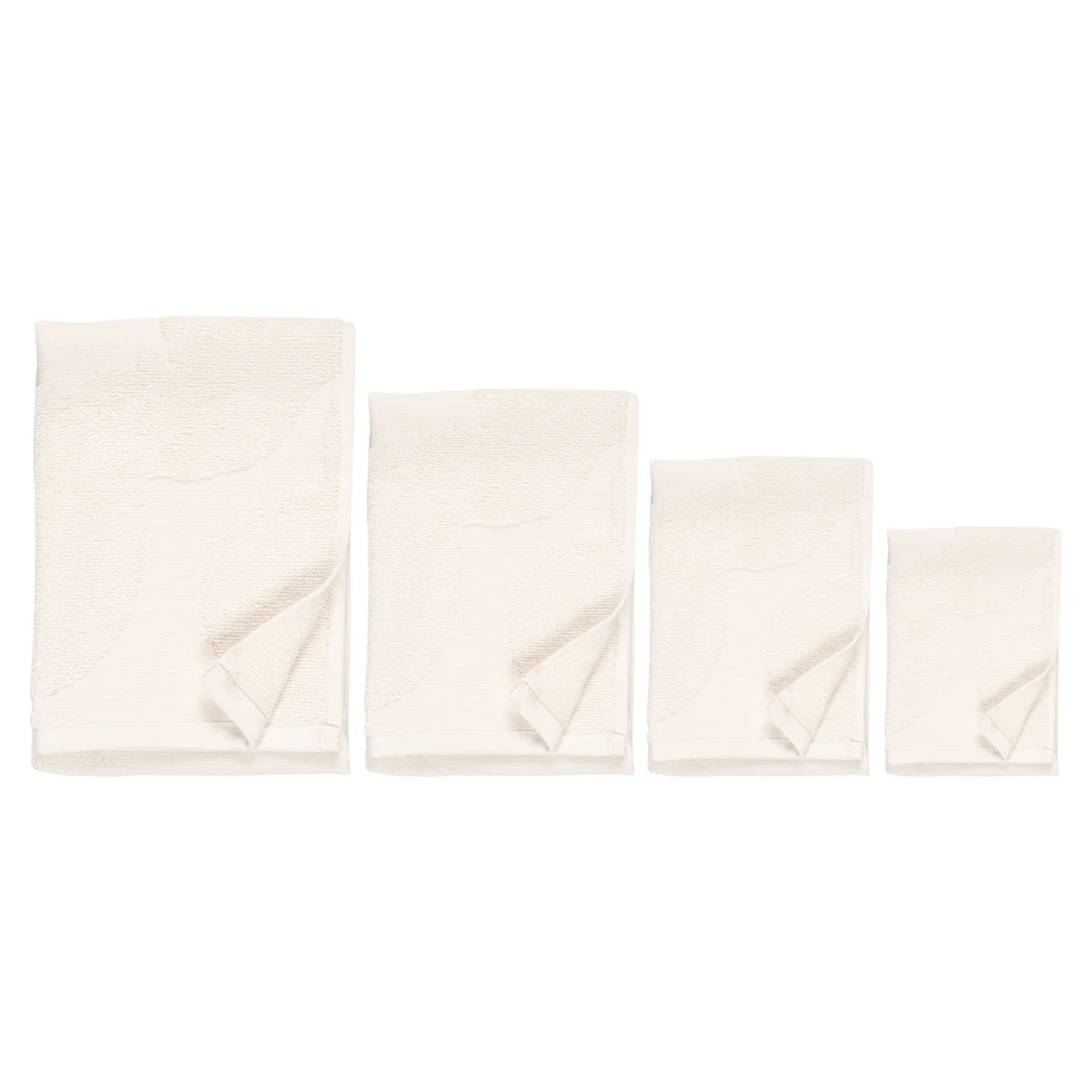 The Unikko Solid towel set from Marimekko combines stylish design with high-quality workmanship. The set includes a bath towel, a hand towel, a guest towel and a mini towel, all made from soft organic cotton terrycloth. The embossed Unikko pattern gives the towels an elegant texture, while the reverse side is kept smooth to provide a pleasant feel against the skin.