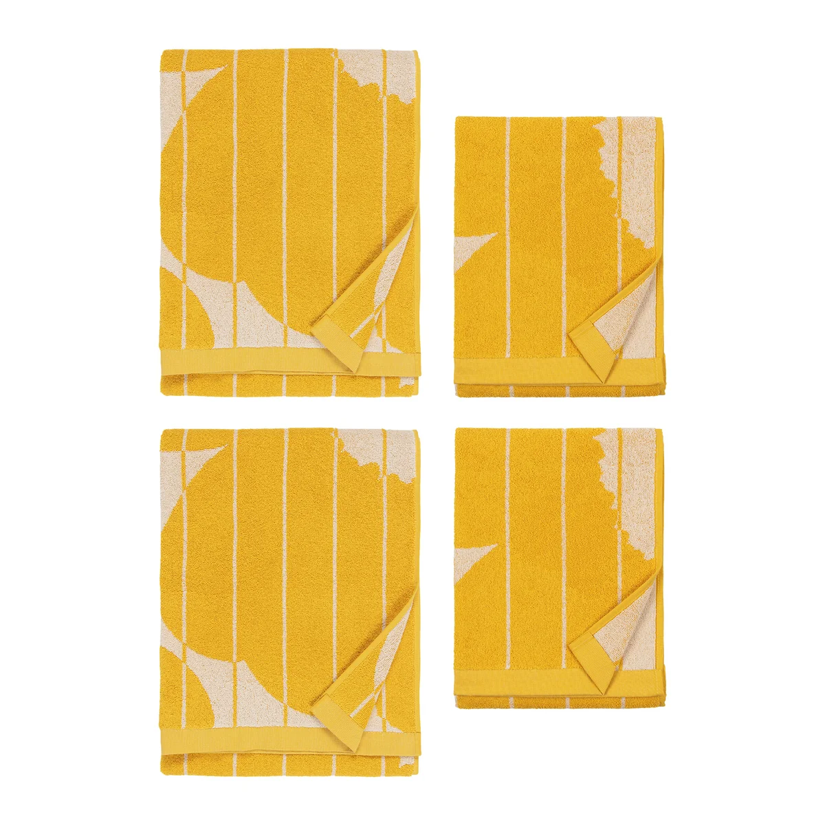 The Vesi Unikko guest towel from Marimekko . Made from organic cotton terrycloth, the guest towel features the Vesi Unikko -pattern, with the colors reversed on the opposite side of the towel. Available in different designs.