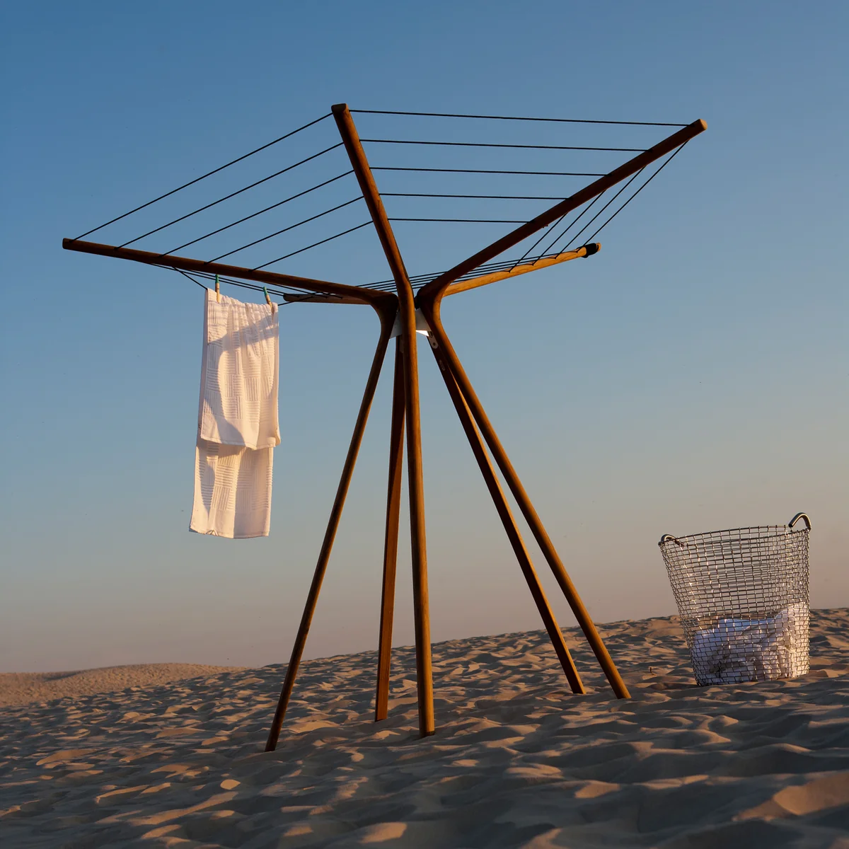 The tripod of the clothes rack is made of teak and stainless steel, which are unmatched materials for outdoor use. Additionally supported by the soft, organic design, Skagerak's Spider Web unobtrusively into a wide variety of natural environments.