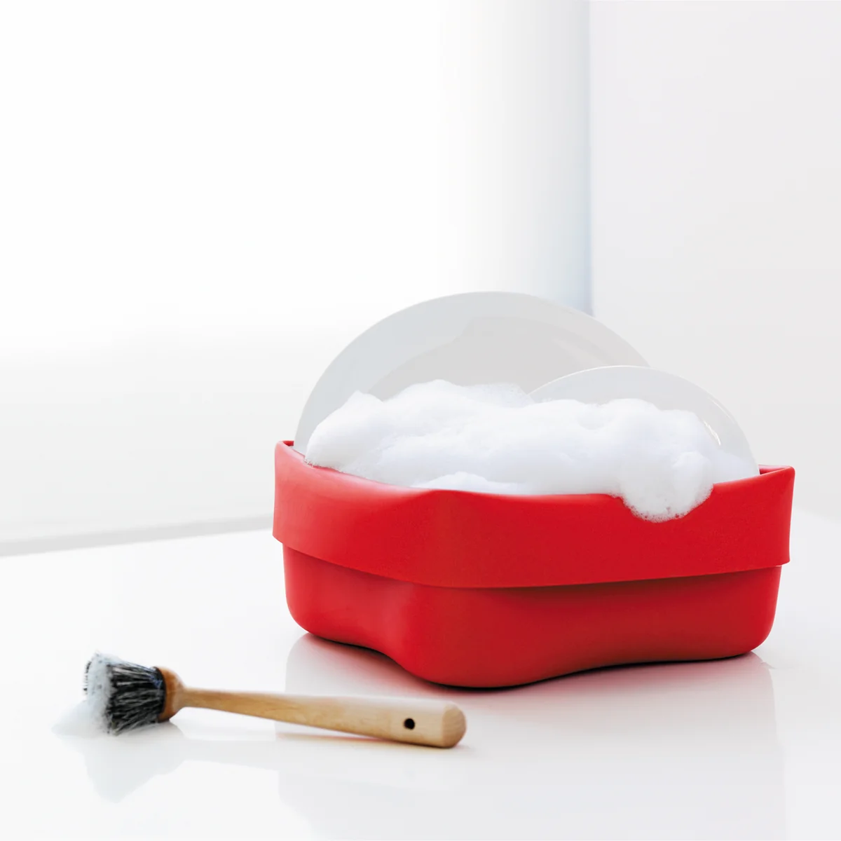 The idea of the Washing up bowl came to designer Ole Jensen one good day while - how could it be otherwise - washing dishes in his own kitchen. He hesitated when he wanted to put the easily fragile porcelain and glass dishes into the hard, steel sink.
