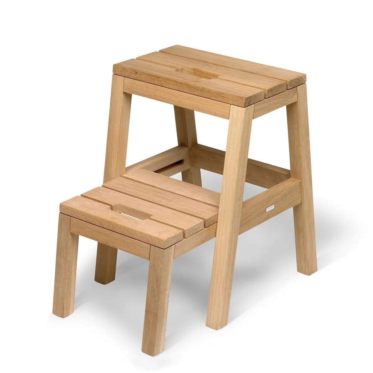 The functional design comes from the design studio Designit. The stepladder is made of solid, FSC®-certified oak or teak wood.