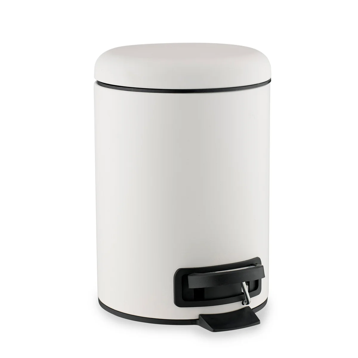 The rubbish bin for the bathroom is made from metal and covered with a matt rubber lining in various colours. The pedal bin’s cover can be opened easily and is very hygienic due to opening by foot. The lid also features a soft closing function, with which it closes slowly and without making a noise. A plastic bucket with a handle, which can be easily taken out to empty it, is inside the bin.