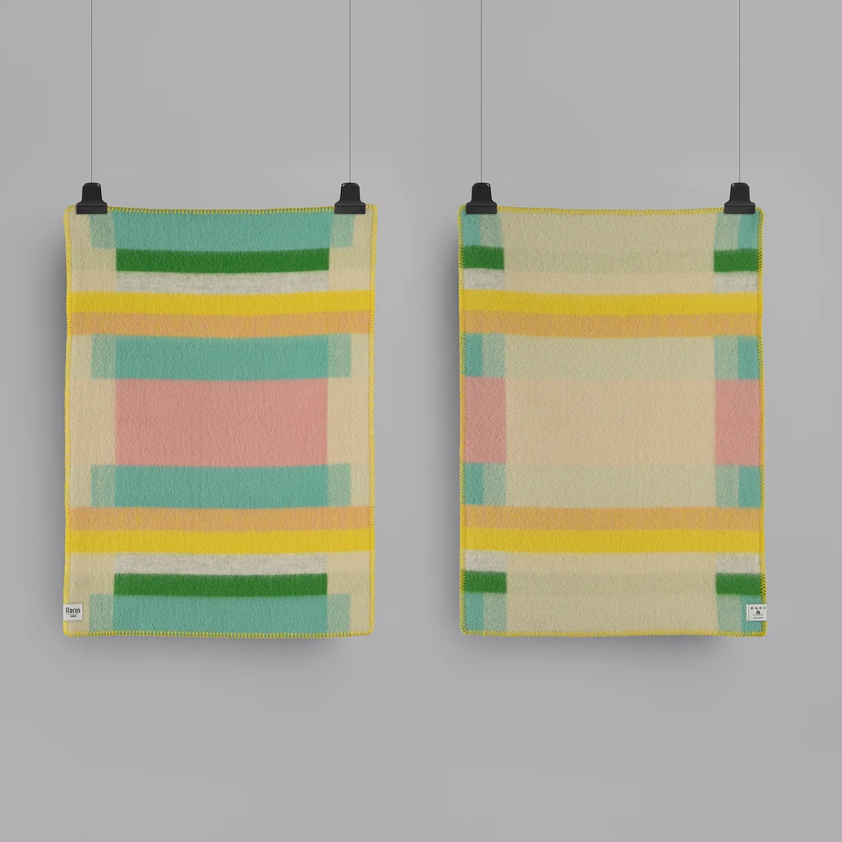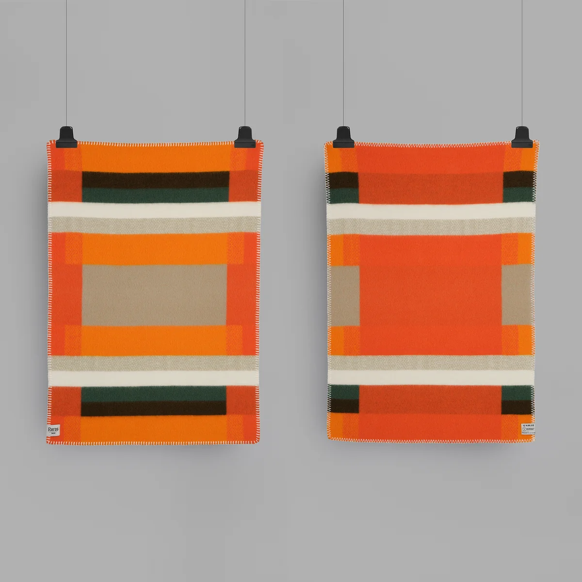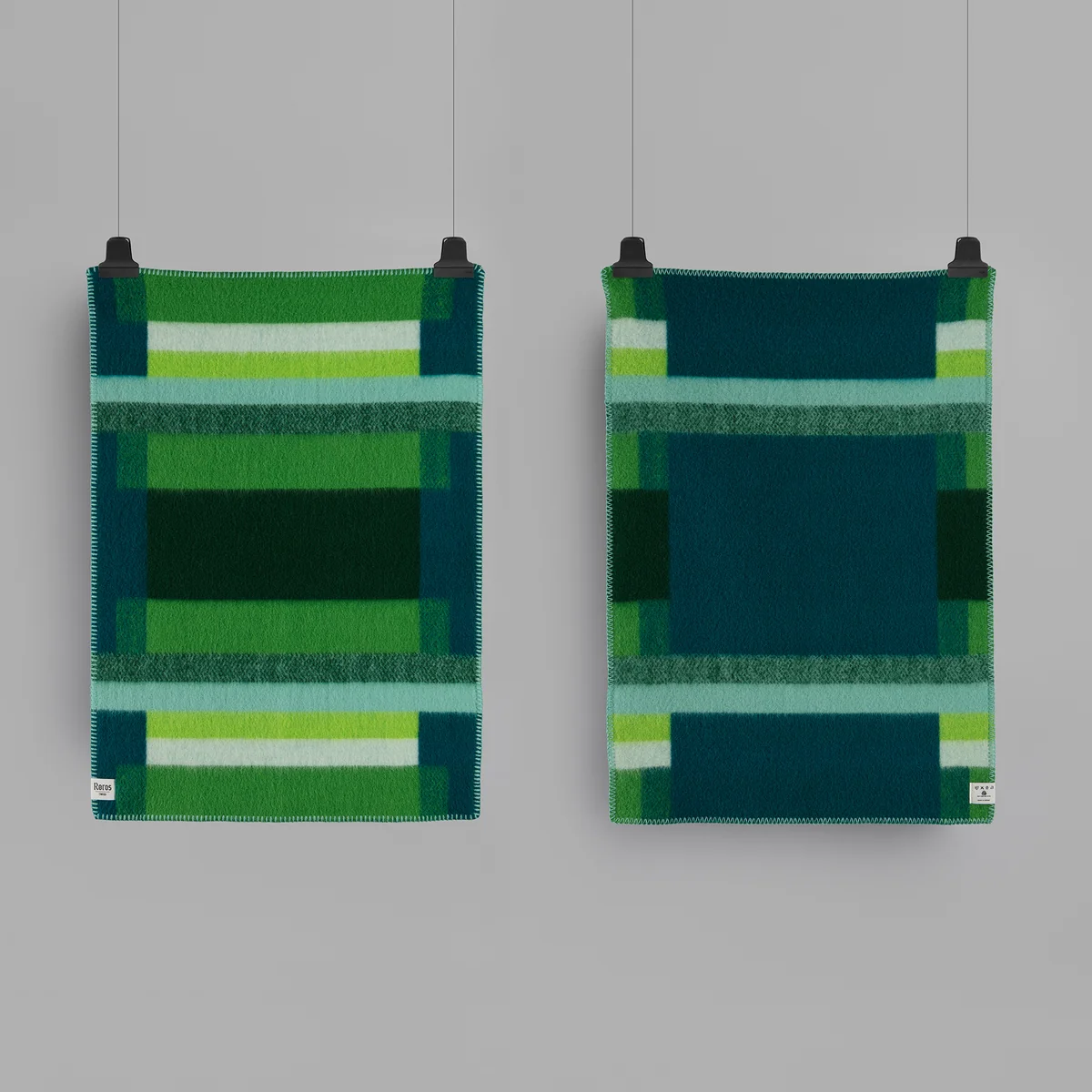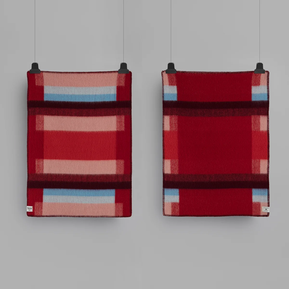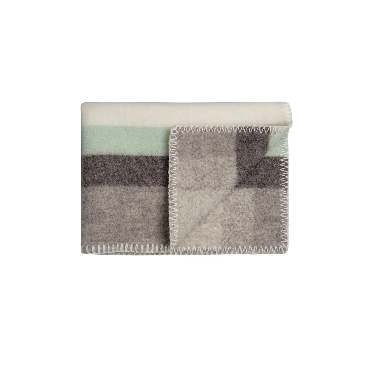 The Mikkel Baby wool blanket by Kristine Five Melvær for Røros Tweed. The Mikkel -series made its debut at the ICFF in New York in 2015, where it received the prestigious award for best textile at the ICFF Editors Awards. Her motifs combine a geometric pattern influenced by the Bauhaus movement and Norwegian weaving traditions with a fresh and modern color palette.