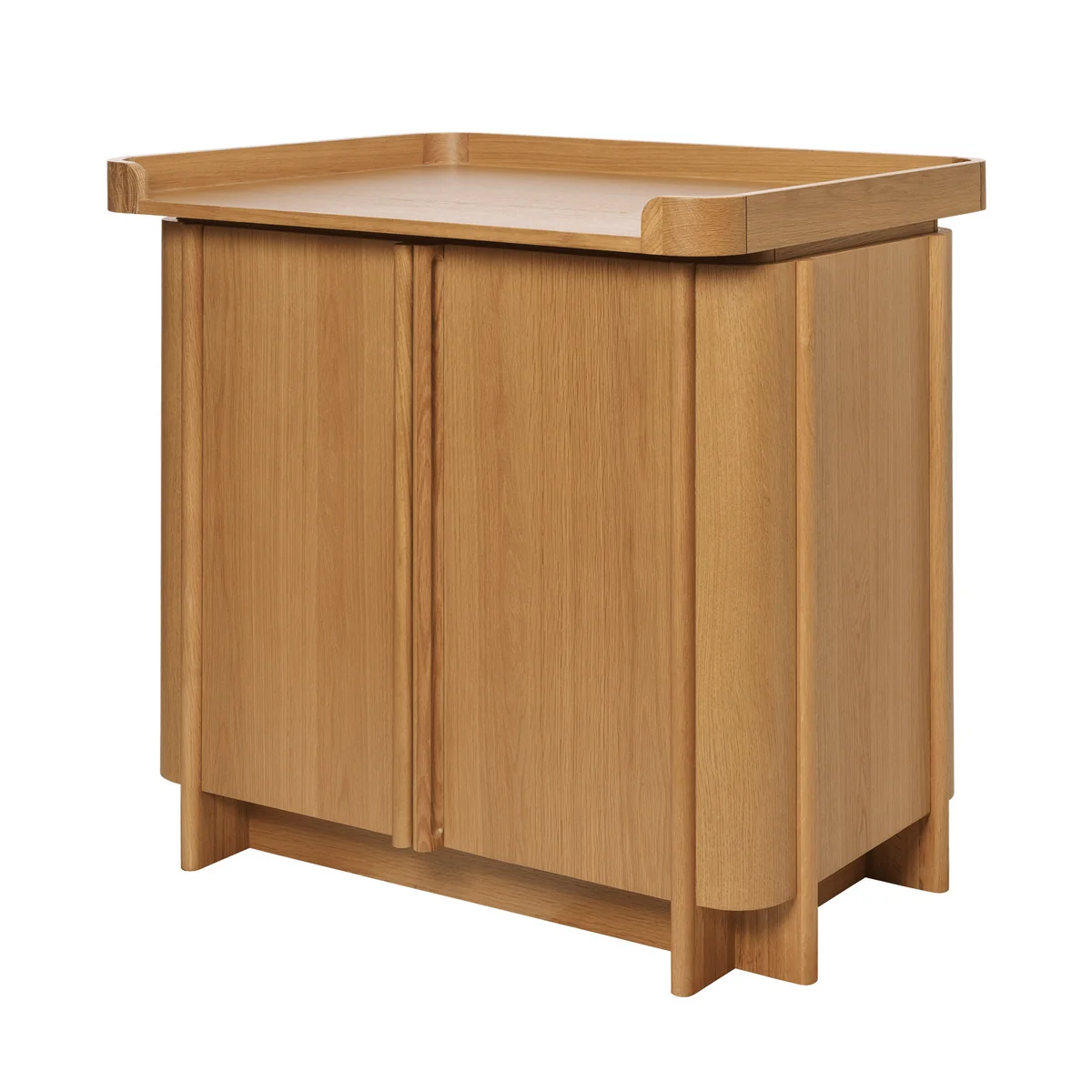 The Tilu changing unit complements the Tilu chest of drawers with a stylish and practical changing function. Made from solid oak, the top unit is securely attached without any visible fixings. This means that the chest of drawers remains beautiful even after the baby has been changed. The well thought-out design offers space for baskets and important utensils and combines functionality with a calm, timeless aesthetic - ideal for children's rooms and bedrooms.