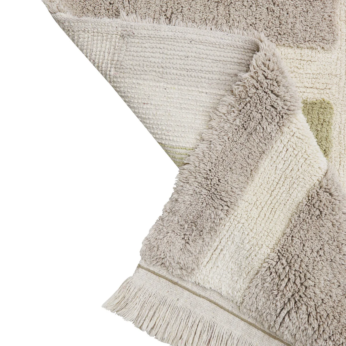 The flexible cotton rug is easy to fold, store and wash. Each piece is handmade in India, so there may be slight variations in the unique pieces.