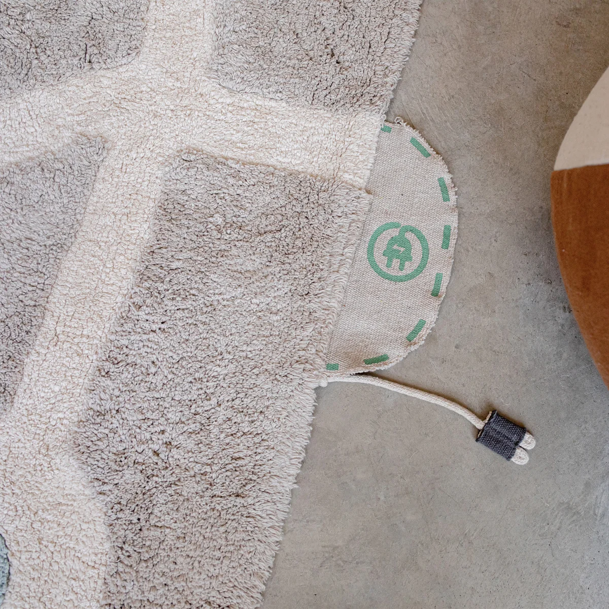 The Eco-City Play Carpet from Lorena Canals offers playful learning processes in the Eco-City . The smallest family members can let their imagination run wild and learn about the quiet hum of electric vehicles in a fun way. The plush carpet with e-vehicles and bikes can be wonderfully placed and transported throughout the house. Eco-City Is made from a cotton base with recycled textile fibers.