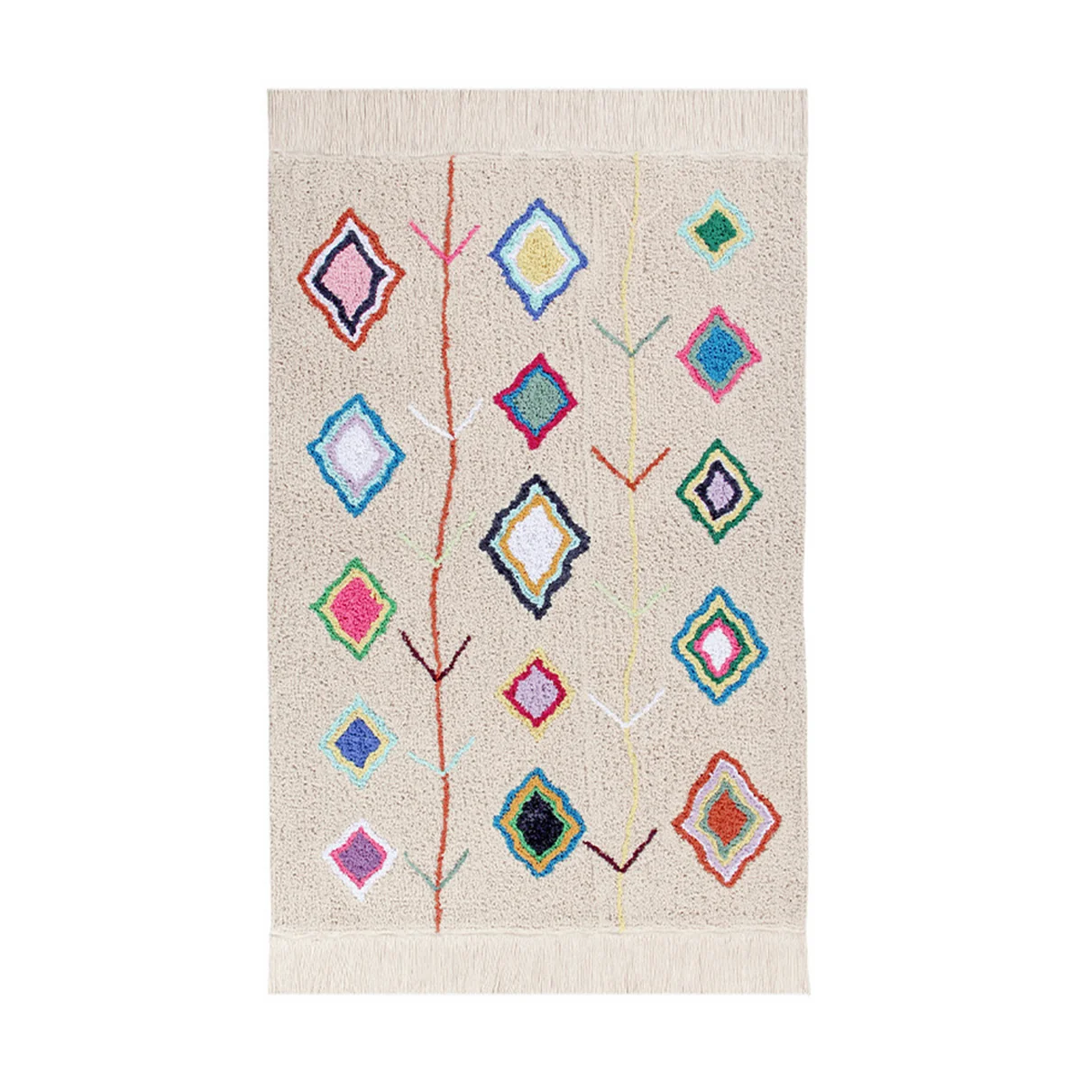 The Kaarol rug from Lorena Canals , inspired by Carol's favorite pieces, combines up to 18 colors in an elegant, bohemian design. Handmade from natural cotton, this versatile rug offers both style and comfort. Not only is it an eye-catcher in the nursery, it is also washable, making it particularly easy to care for and hygienic.