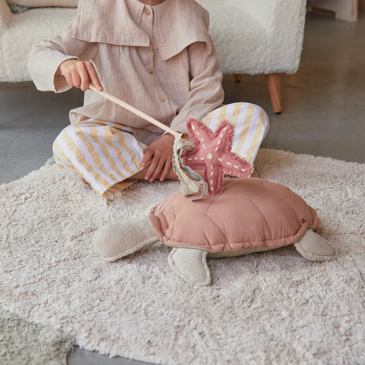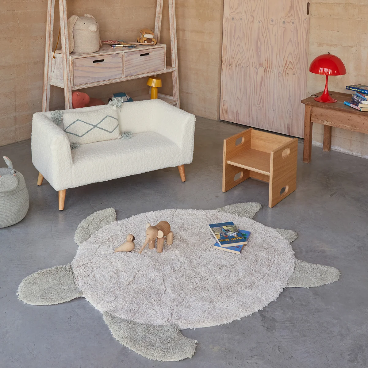 The Sea Turtle Carpet from Lorena Canals presents itself in a lovely and well-colored turtle design. The tufted surface of the soft cotton carpet provides the perfect basis for exciting and thrilling play moments in the children's room. The rug is also very suitable for small breaks. The Sea Turtle Carpet fits into any existing home decor.