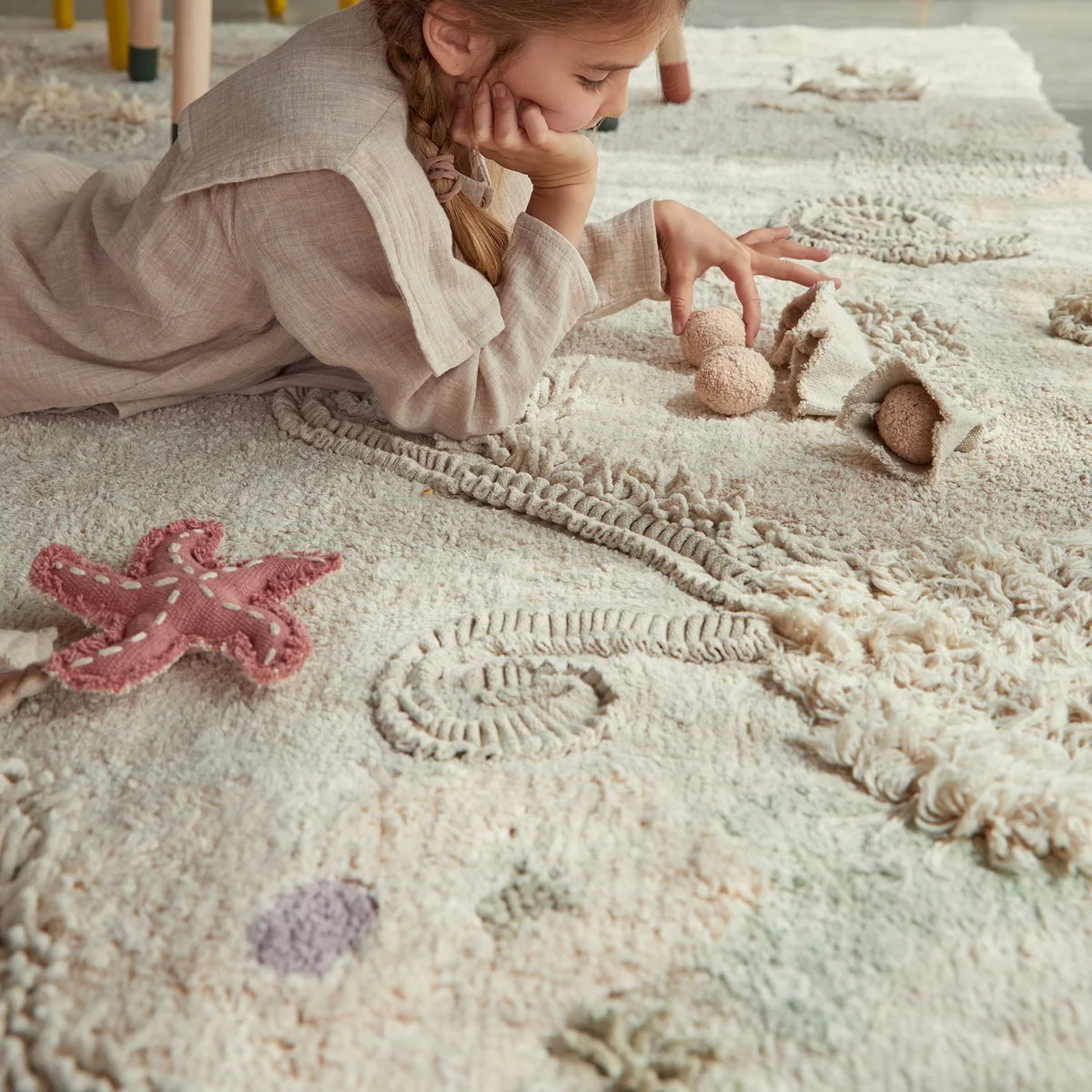 The Seabed play rug with play accessories from Lorena Canals lets children dive into the infinite world of the seas. With dreamy elements, the rug stages a magical underwater landscape and presents itself in light pastel shades that fit into any interior. Different textures and the included play accessories give free rein to the creativity of the little darlings.