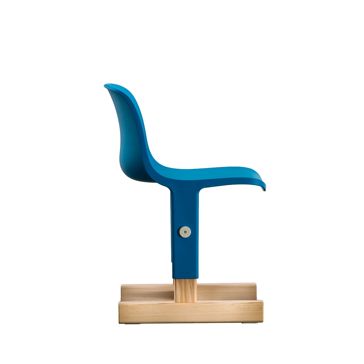The chair is available with a polypropylene seat shell in three colours. The base is made of solid ash wood. For adults and children, the chair is easy to grasp and move. The Magis logo is embossed on each chair and guarantees the authenticity of the product.