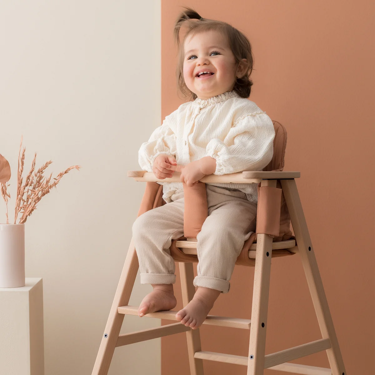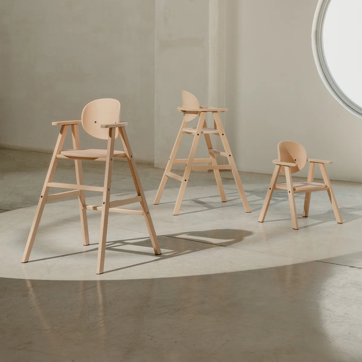 The convertible high chair for children from Nobodinoz is made of solid European beech wood. Separately are seat cushions for the Growing Green chair and tray for the high chair Growing Green Kids chair available.