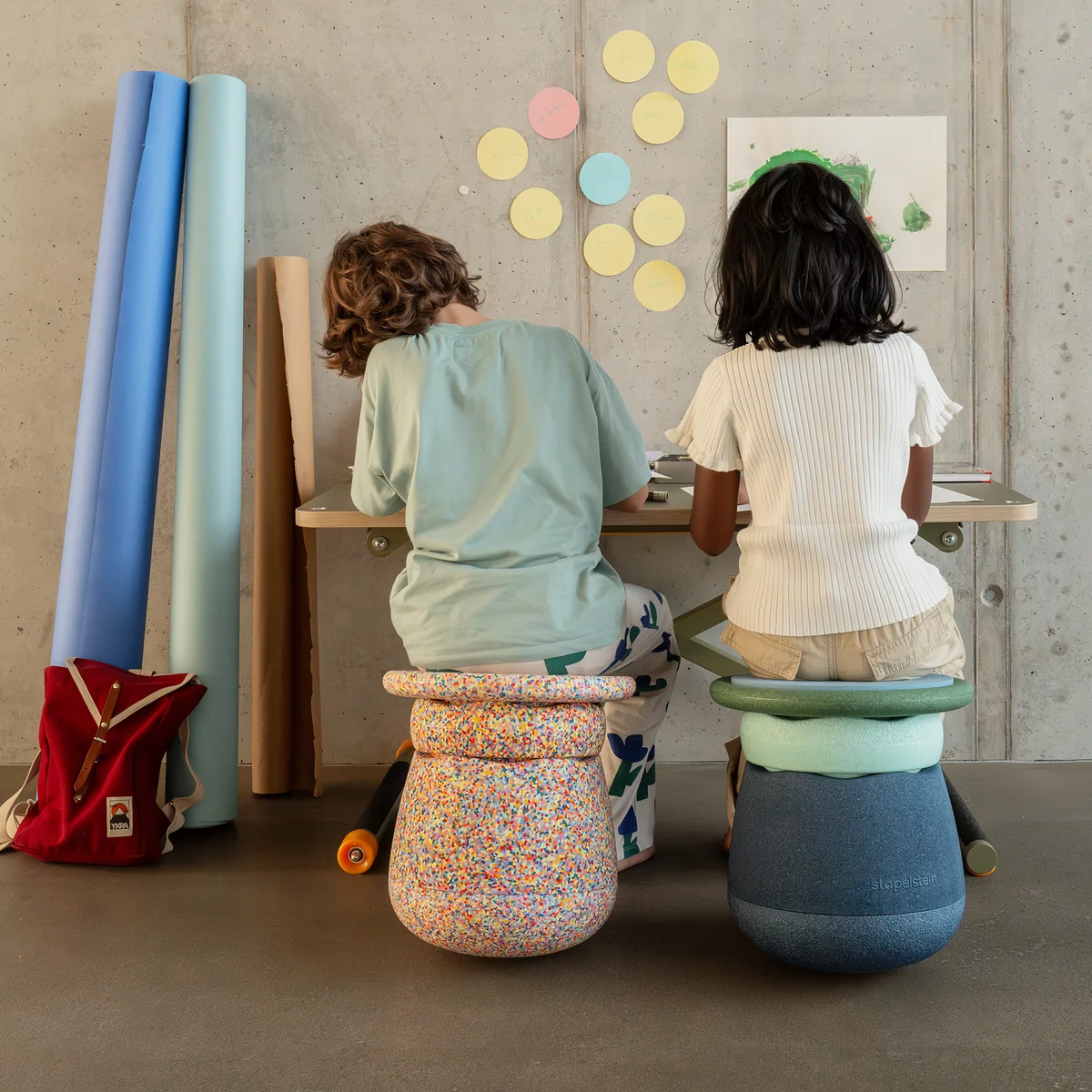 With the Stapelstein® Dynamic set makes active sitting an integral part of your everyday life - whether in the children's room, home office or during yoga. The set consists of a base, a board and two Originals and can be adjusted in seconds - without screws or tools. The curved underside of the base ensures gentle micro-movements that strengthen the back and concentration, while the board promotes balance and coordination.