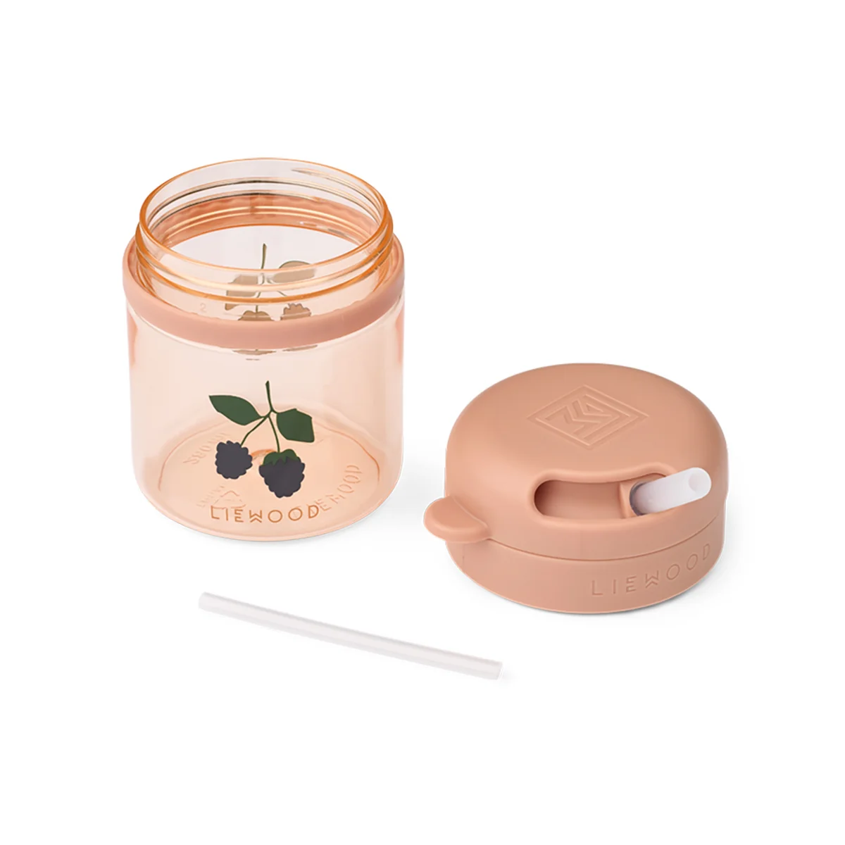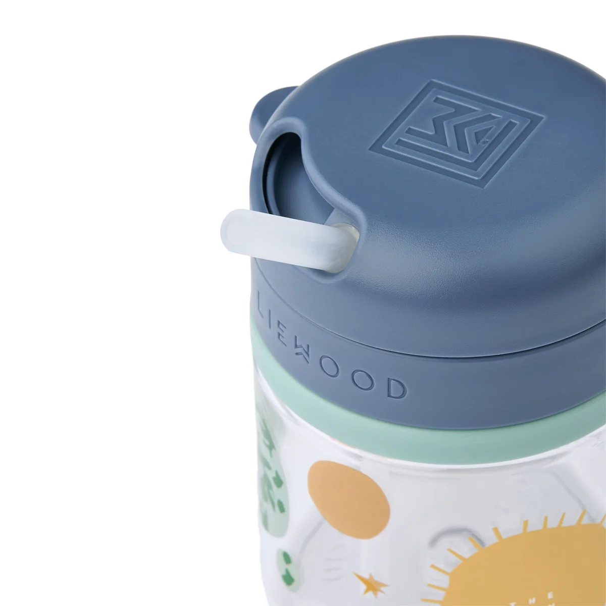 The Pavia drinking bottle from LIEWOOD combines child-friendly design with practical functionality. Made from robust, shatterproof Tritan, it looks almost like glass, but is significantly lighter and safer. The integrated silicone straw with airflow system makes it easier for little ones to drink, while the twist and lock mechanism ensures that the bottle does not accidentally spill on the go - ideal for outings, nursery or the baby carriage. Thanks to the fact that all parts can be completely dismantled, the bottle can be cleaned hygienically and is also dishwasher-safe.
